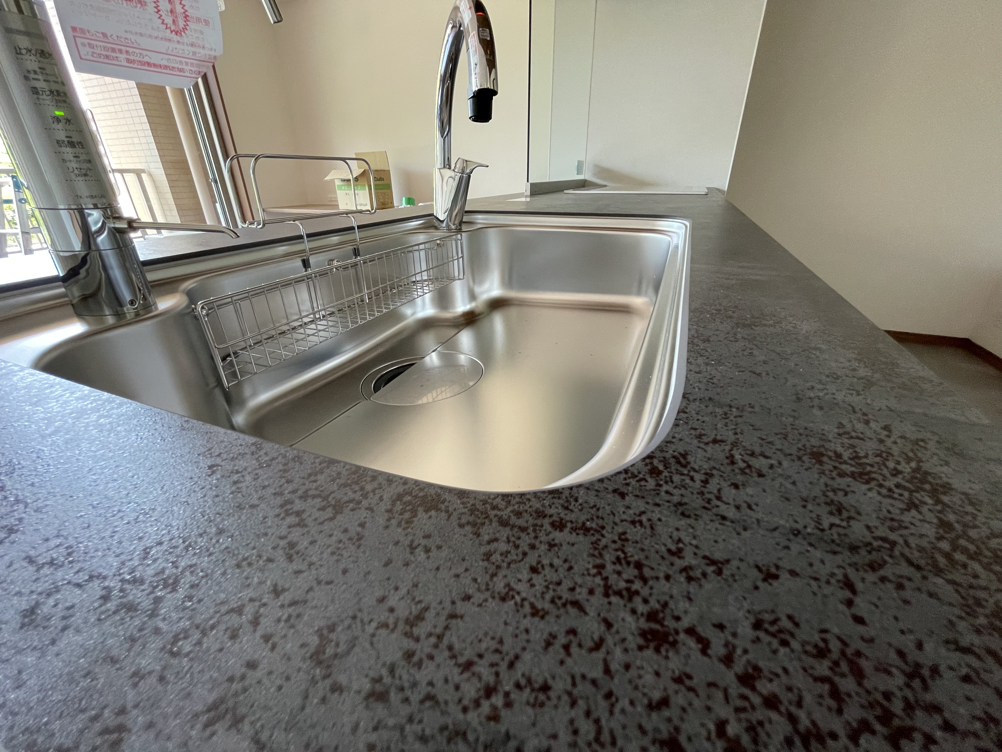 キッチンの養生が外れて、セラミックカウンターのお披露目です