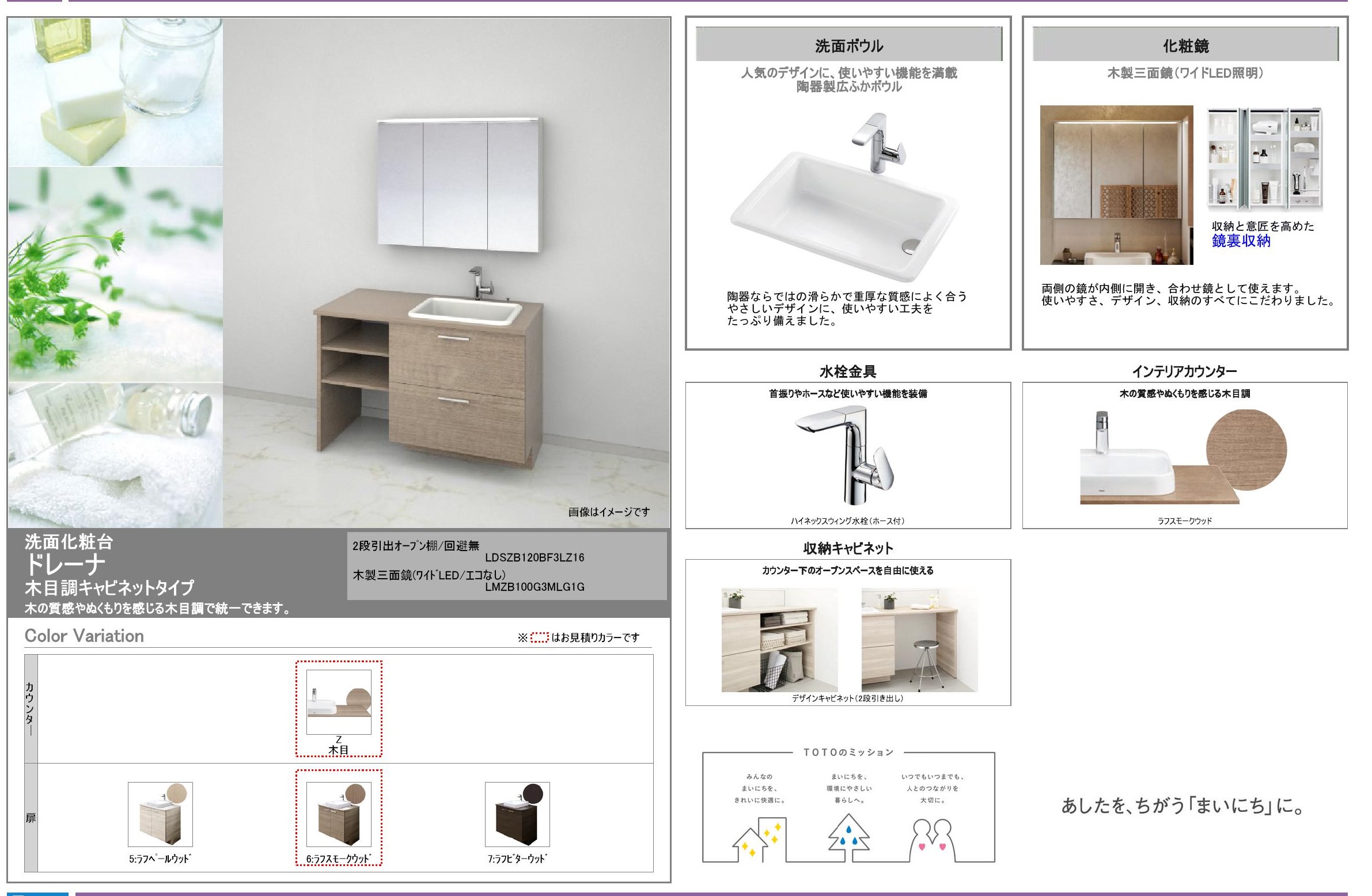洗面台はTOTOの『ドレーナ』という新商品を採用していただきました。