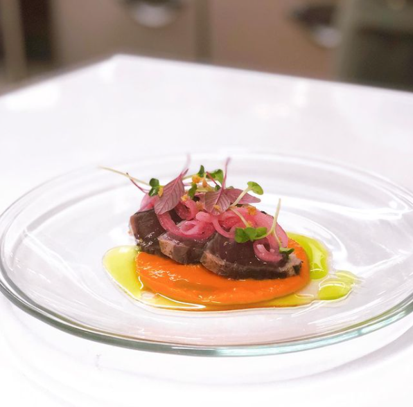 赤色のソースが小笠原シェフ特製のソースピペラード![]()