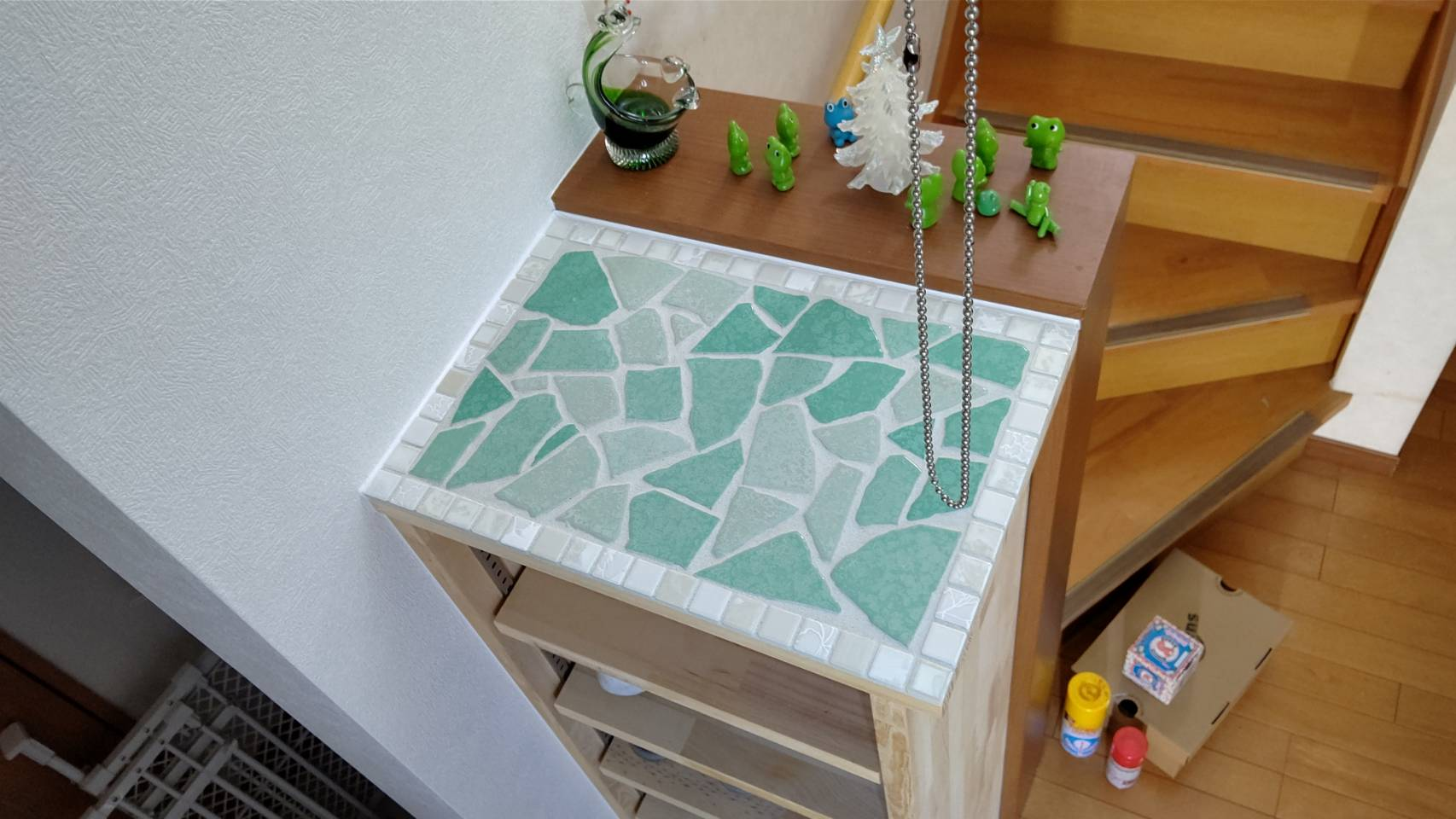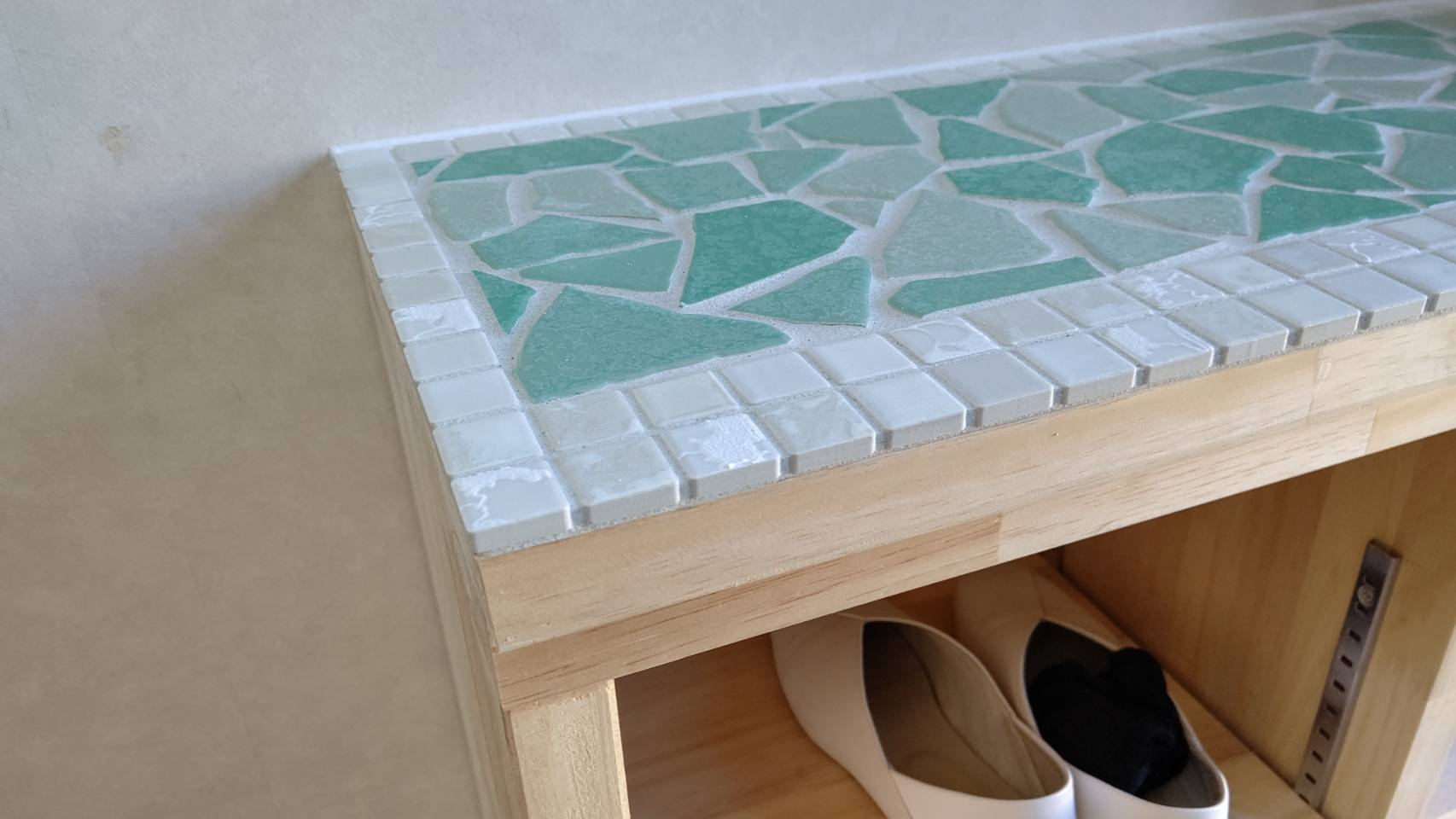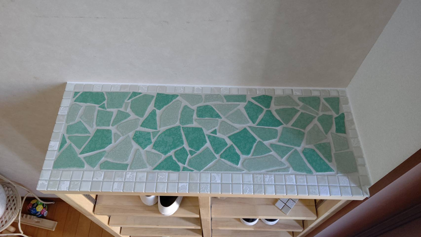 2種類のタイルを組み合わせて貼りましたが、とても可愛い靴箱になりました