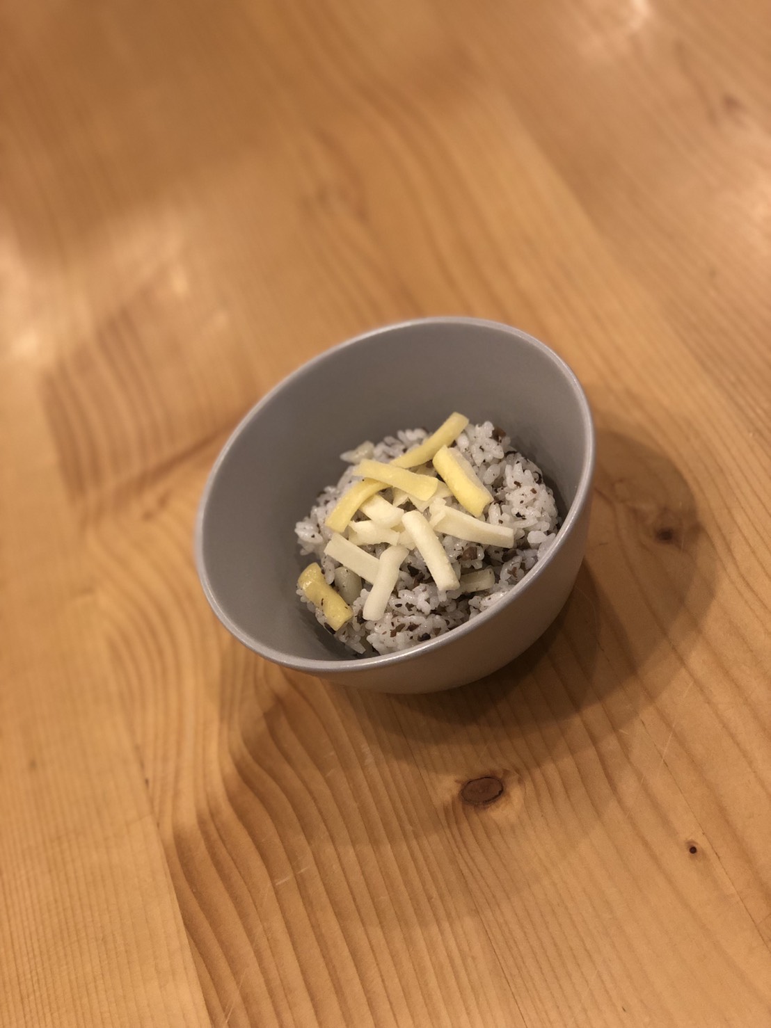 黒トリュフが贅沢に入ったご飯+チーズにスープをスプーンで2~3杯入れてから