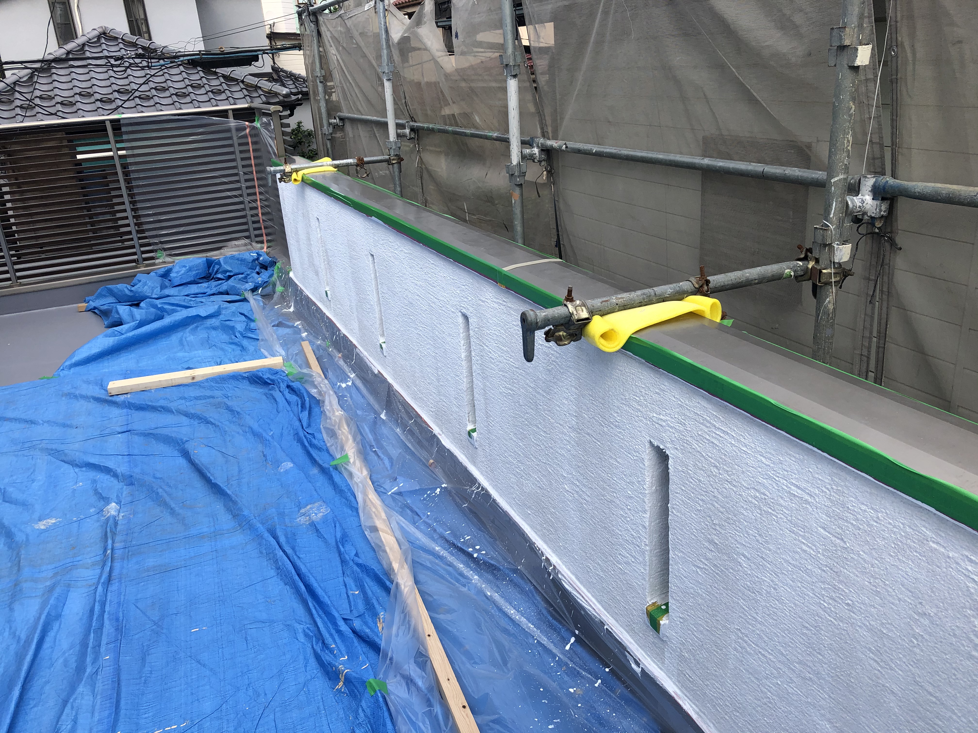 雨垂れで汚れていた手摺壁もきれいに塗装しました。