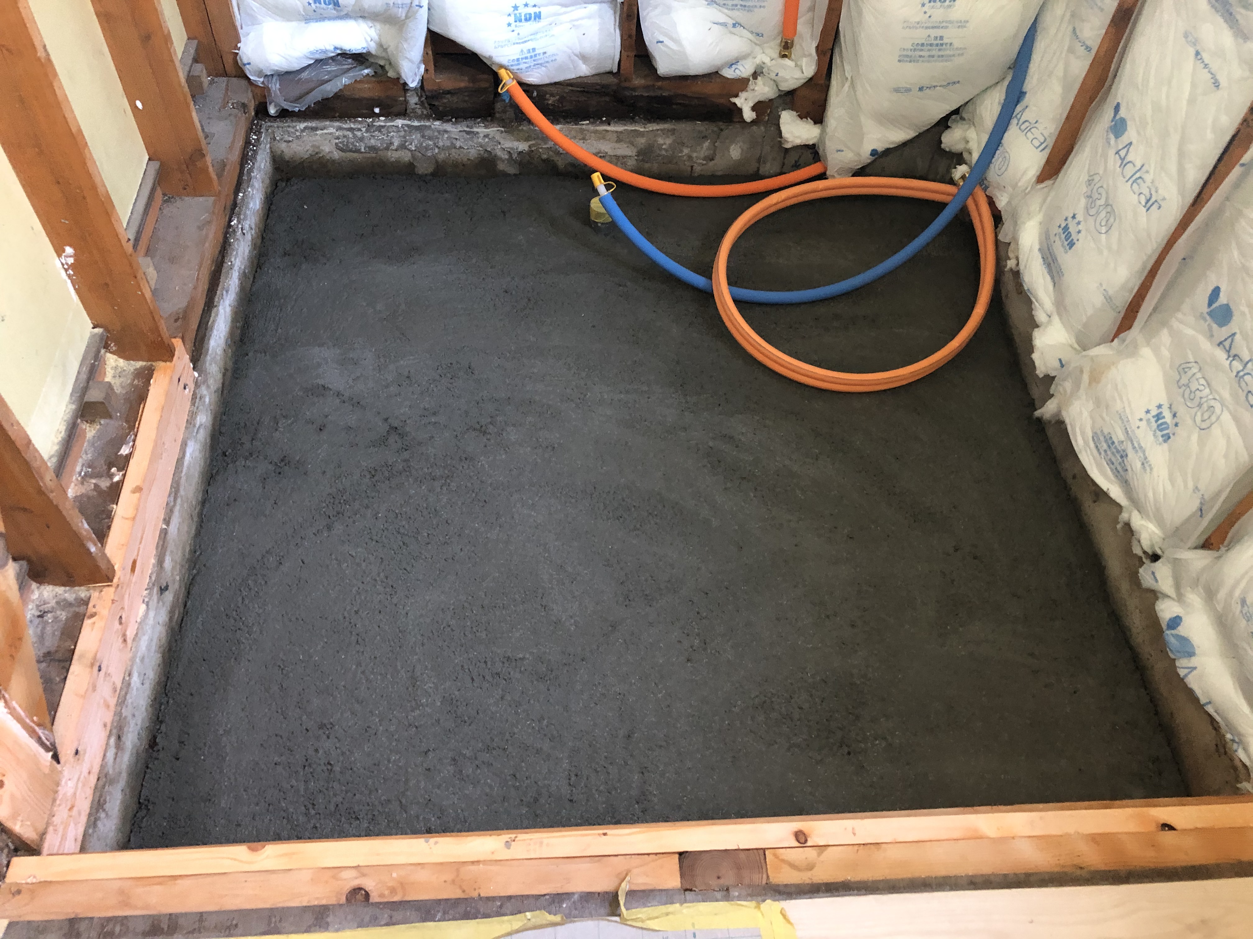 給水・給湯・追い炊き・排水管の配管をして、土間コンクリートを打ちます