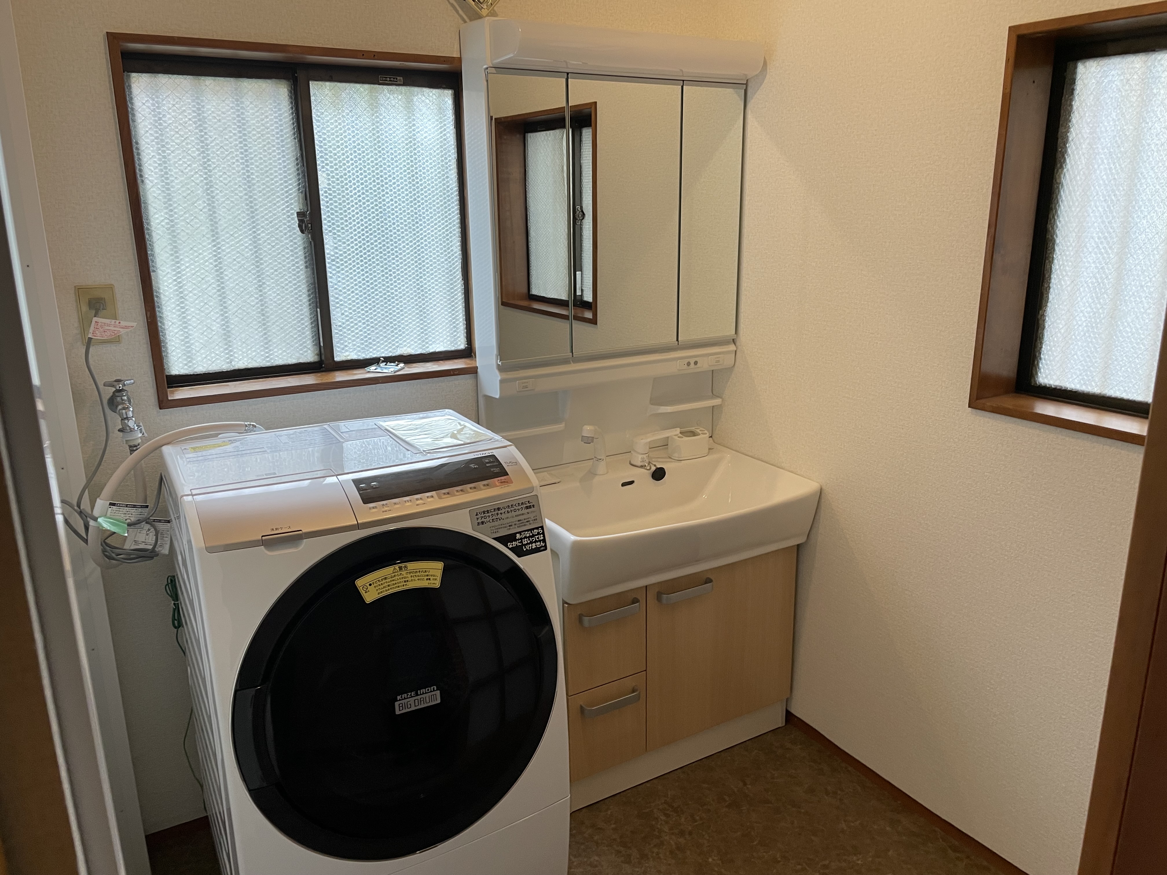 クロスの貼替えが終わり新規の洗面台が設置されました。