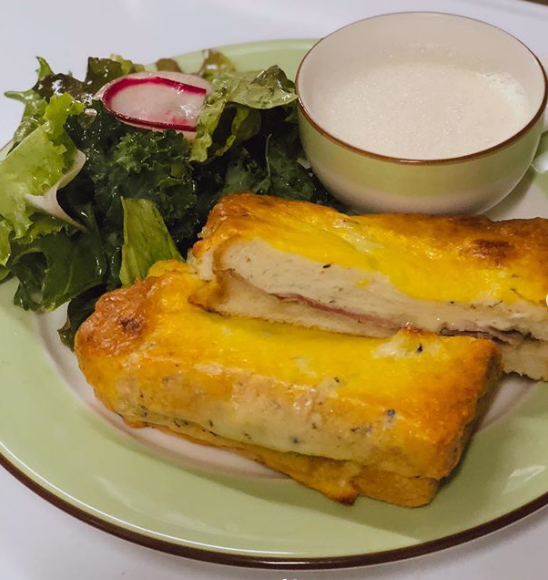 少し厚めの食パンに、たっぷりのベシャメルソースと