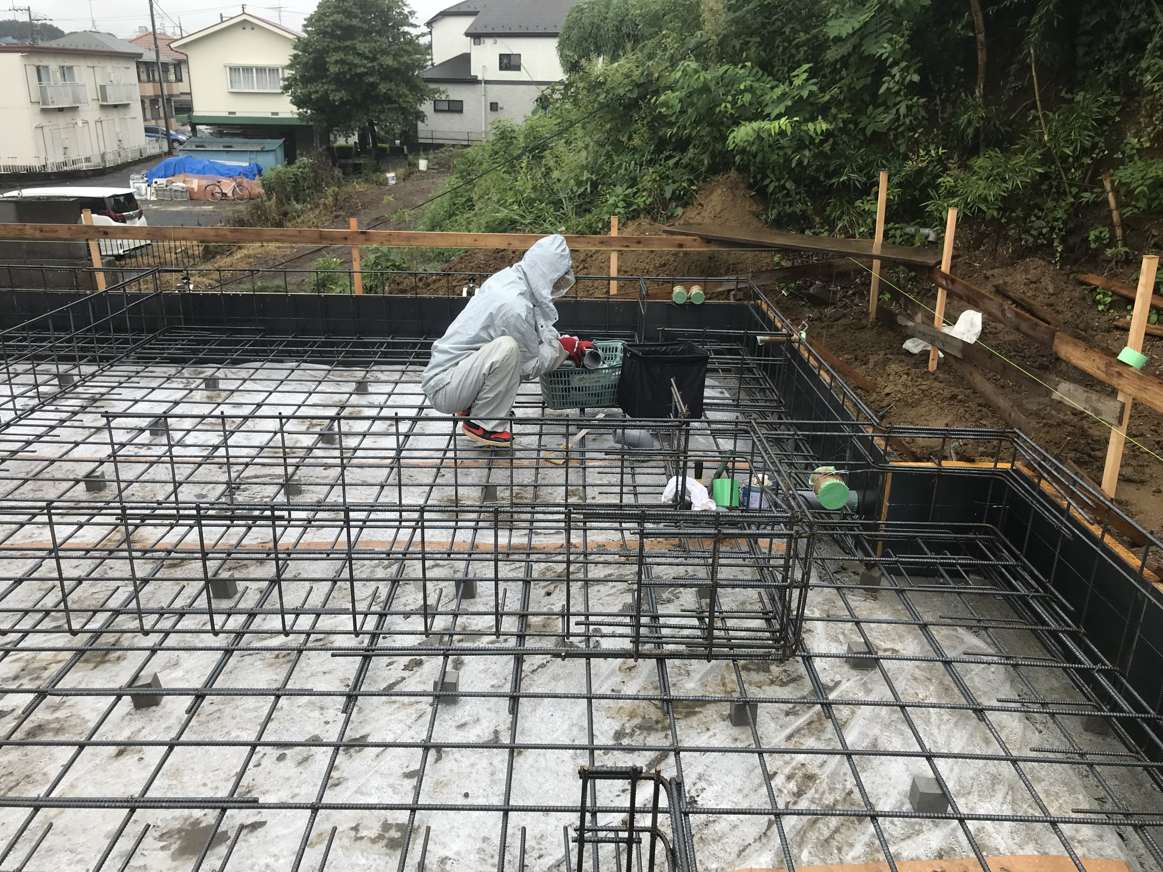 配筋が終わったところで、第三者検査機関(JIO)の検査を受け、鉄筋の太さや間隔等をチェックしてもらいました。
