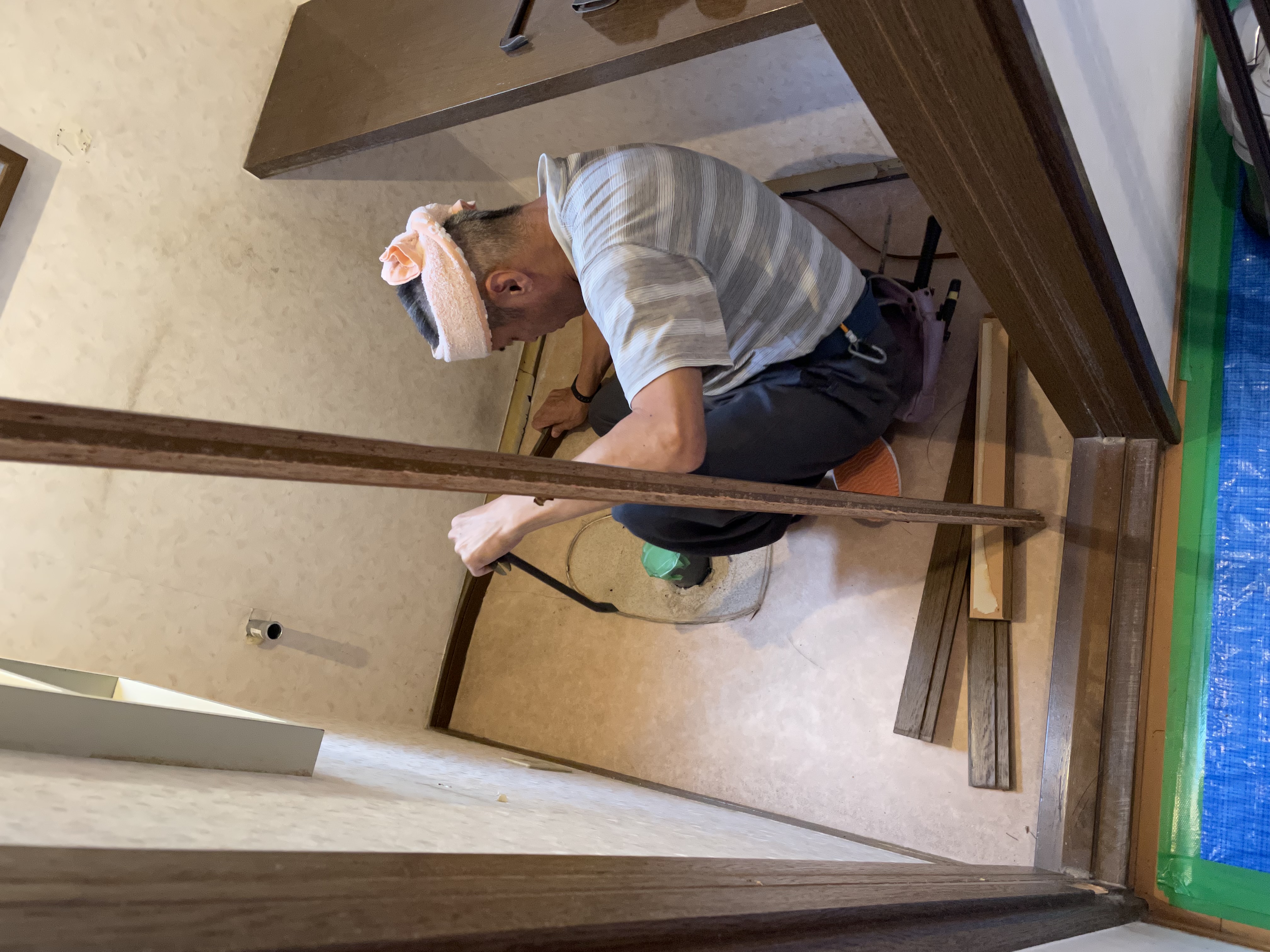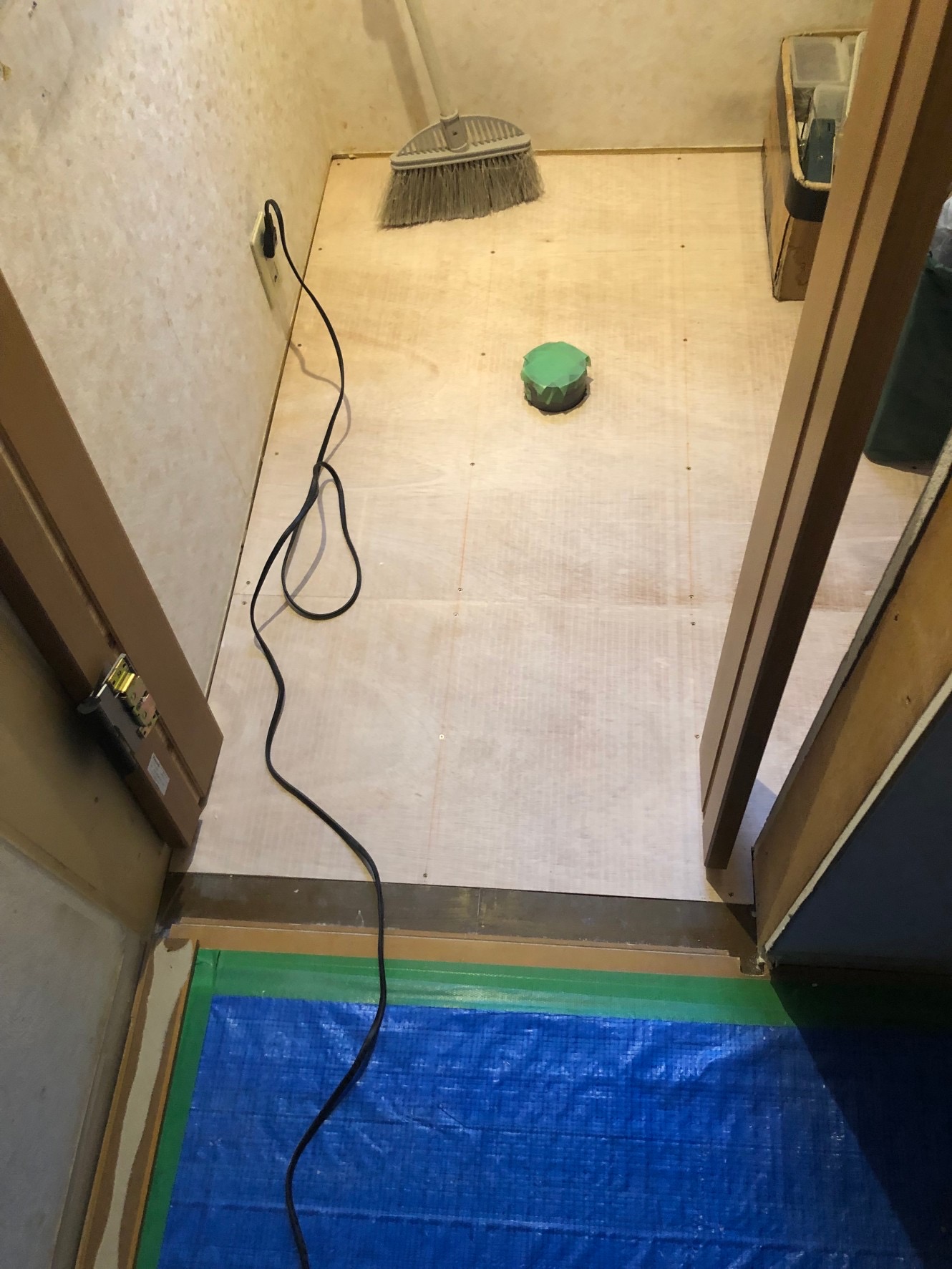 続いてドア枠を撤去し、あっという間に床下地完了![]()