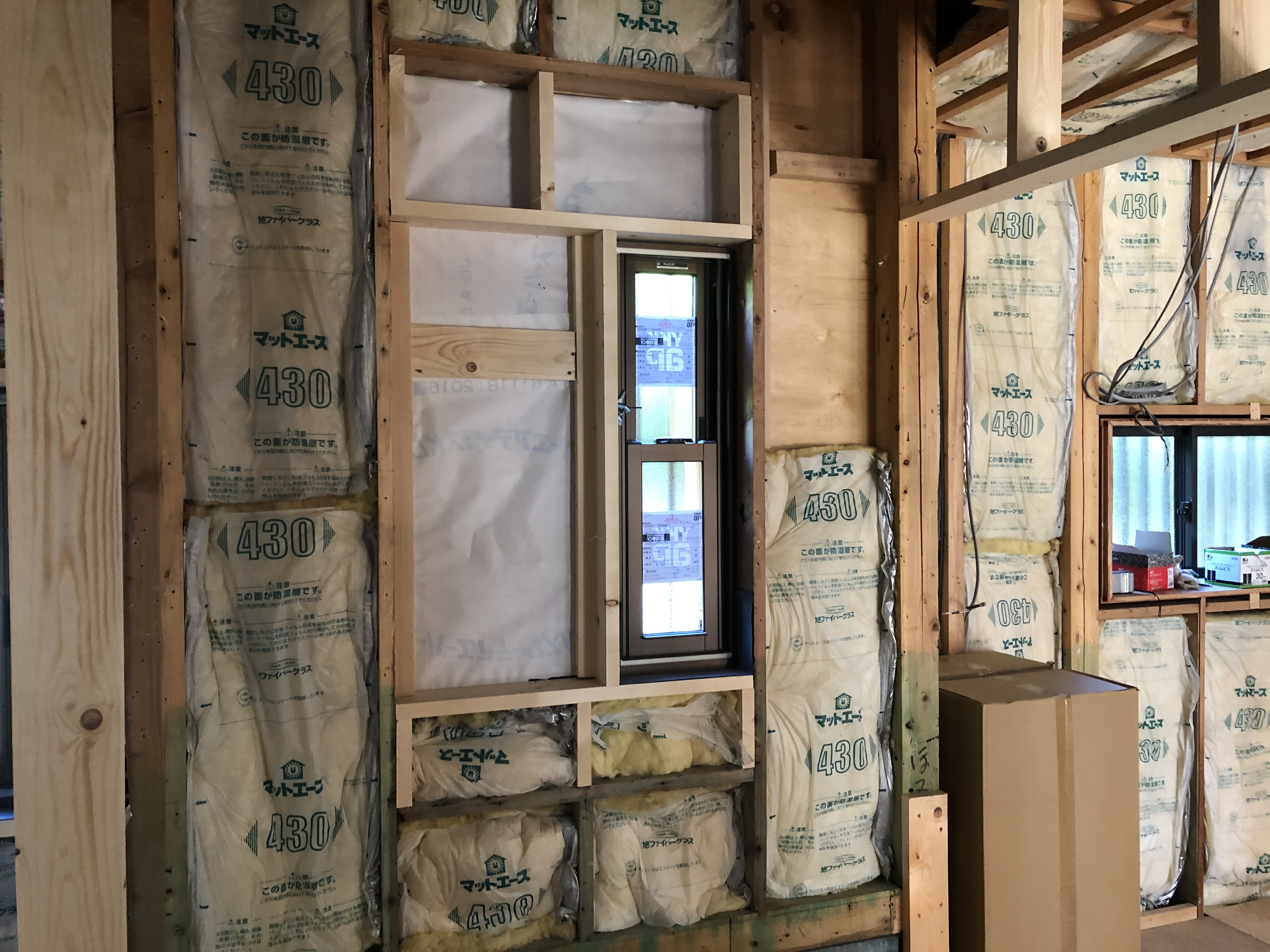 窓周辺にはラスカットというモルタル塗りの下地材を貼っています。