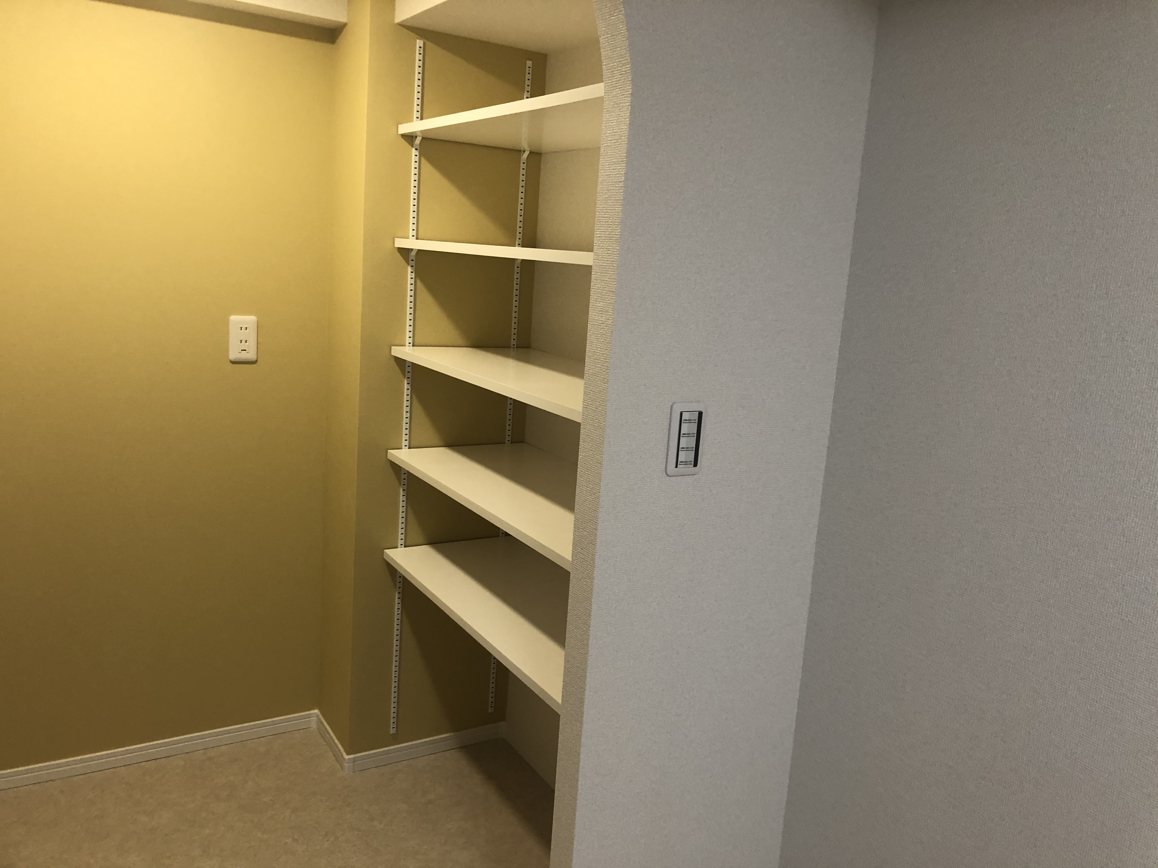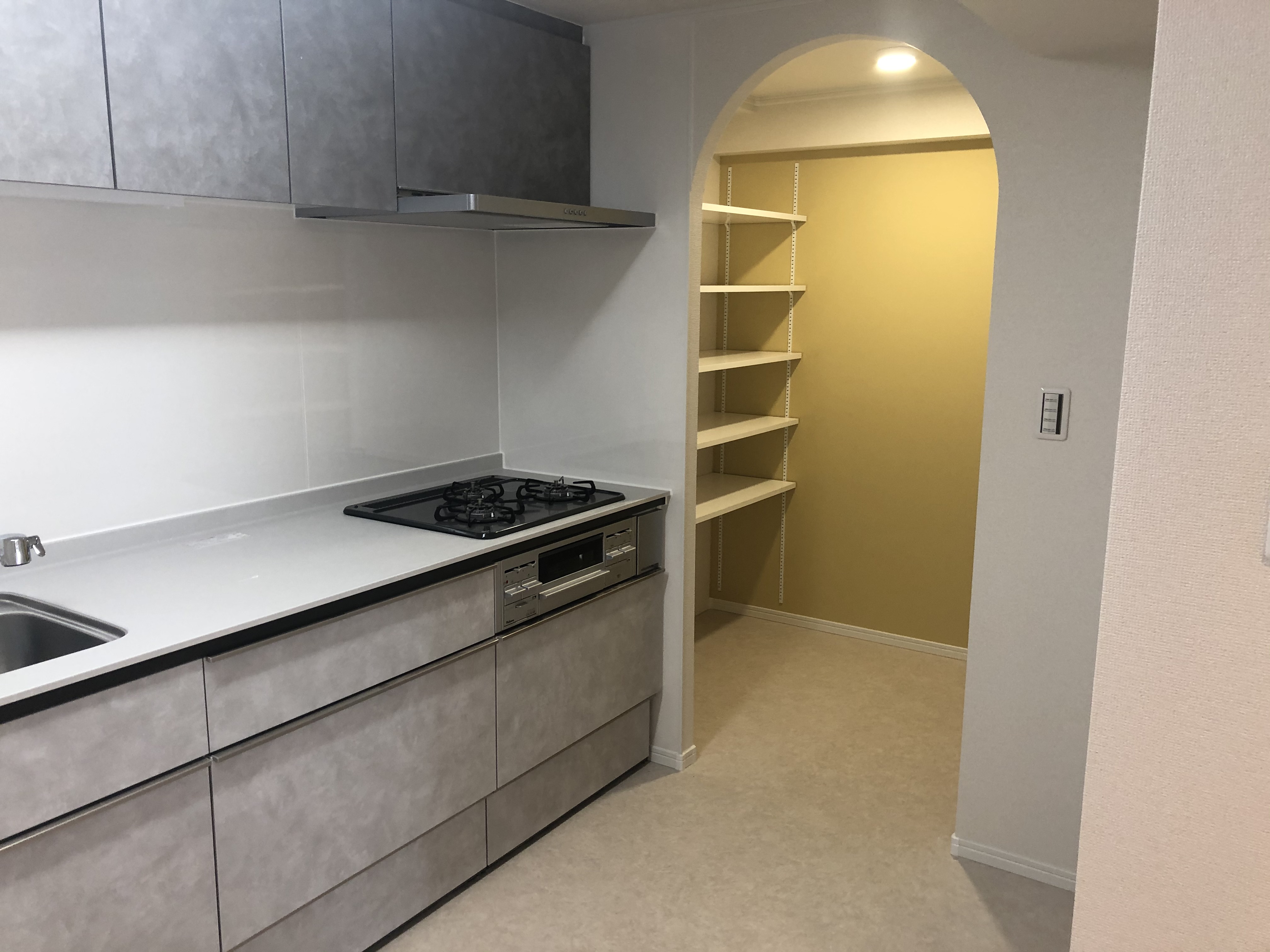 新しいシステムキッチンの隣に、パントリー (食料収納庫) を新設しました。