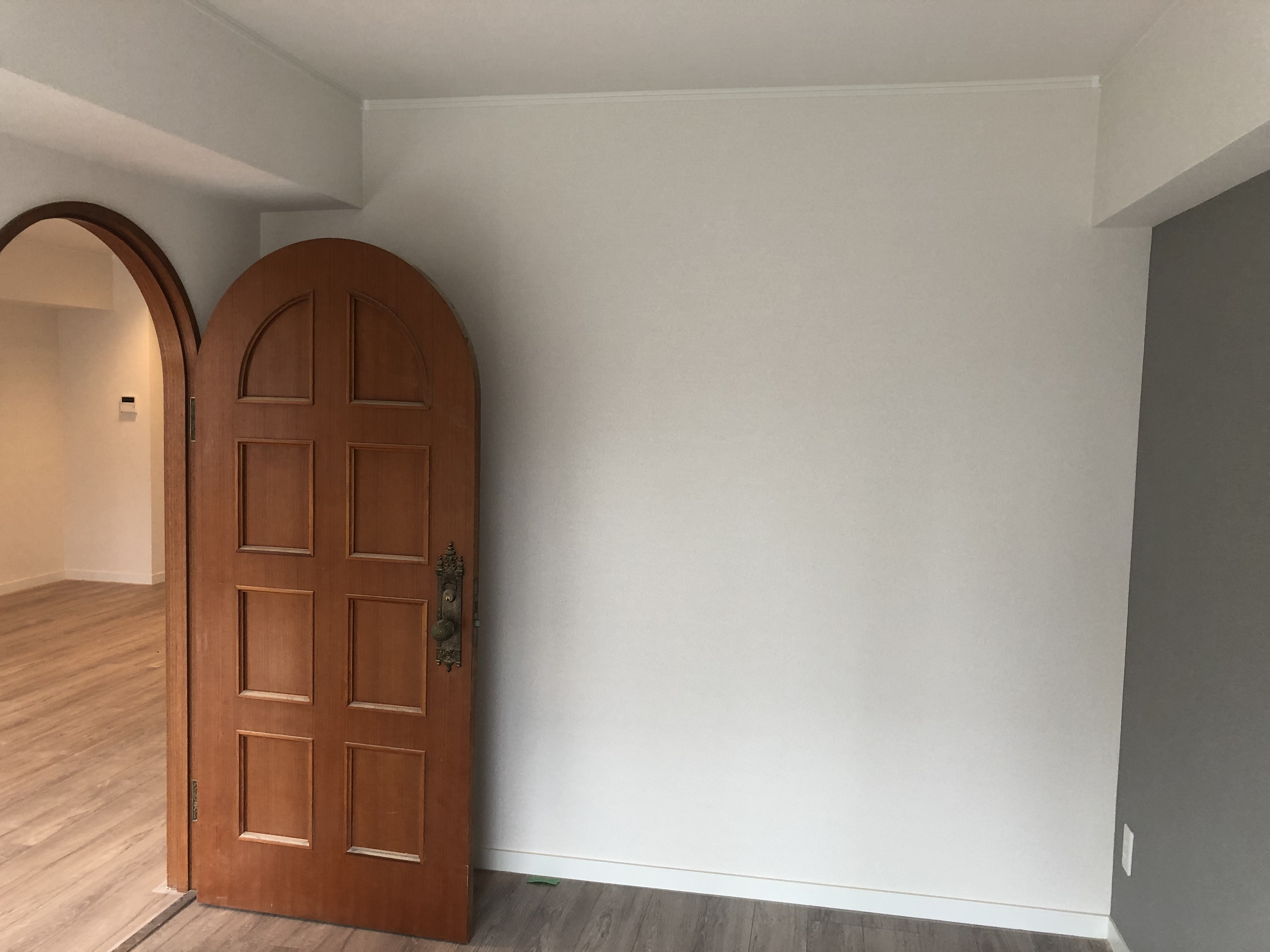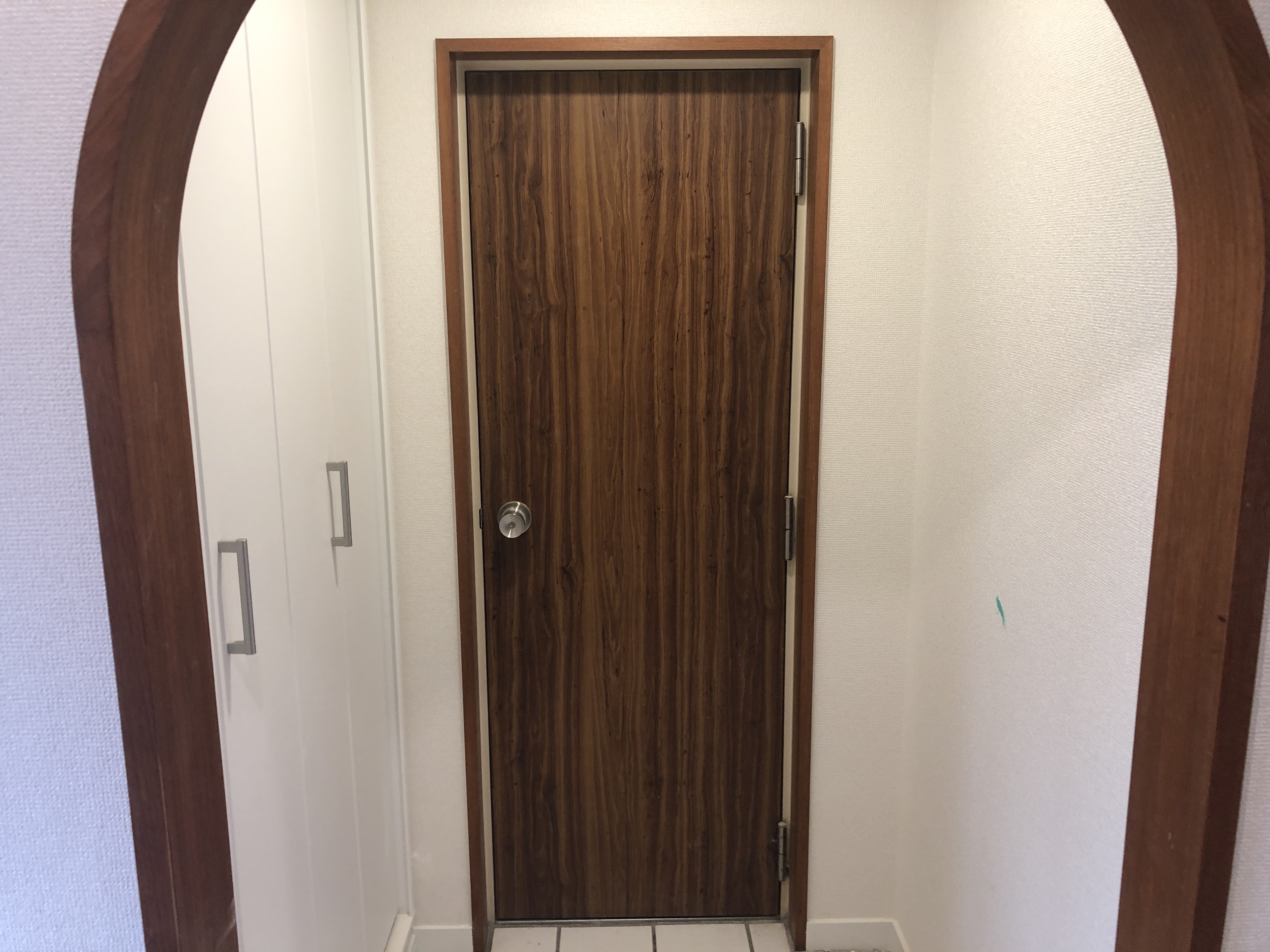マンションの玄関ドアも室内側は木目シートを貼る事ができます。