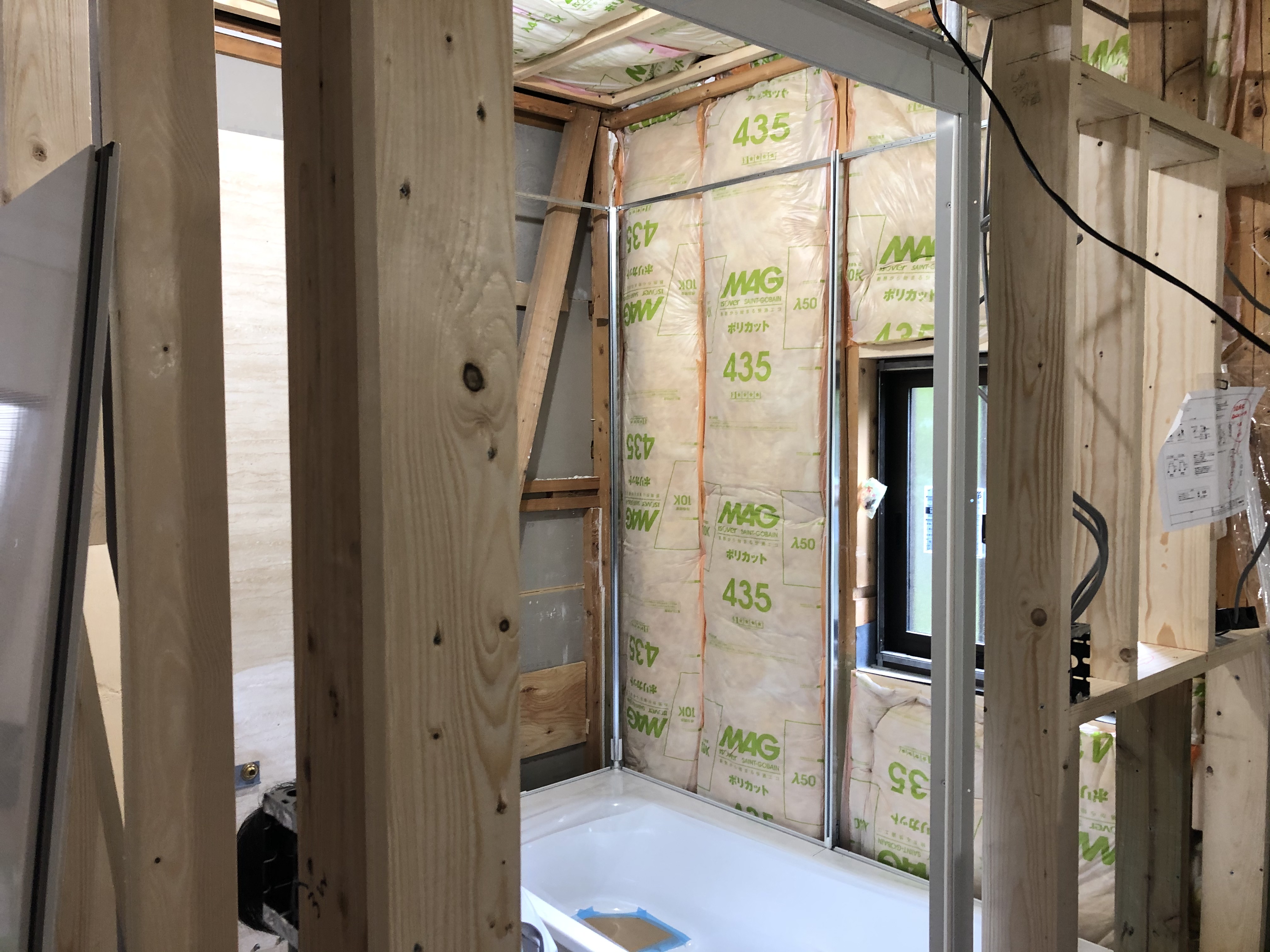 現場では耐震補強と断熱工事が完了し、先日ユニットバスが搬入されました。