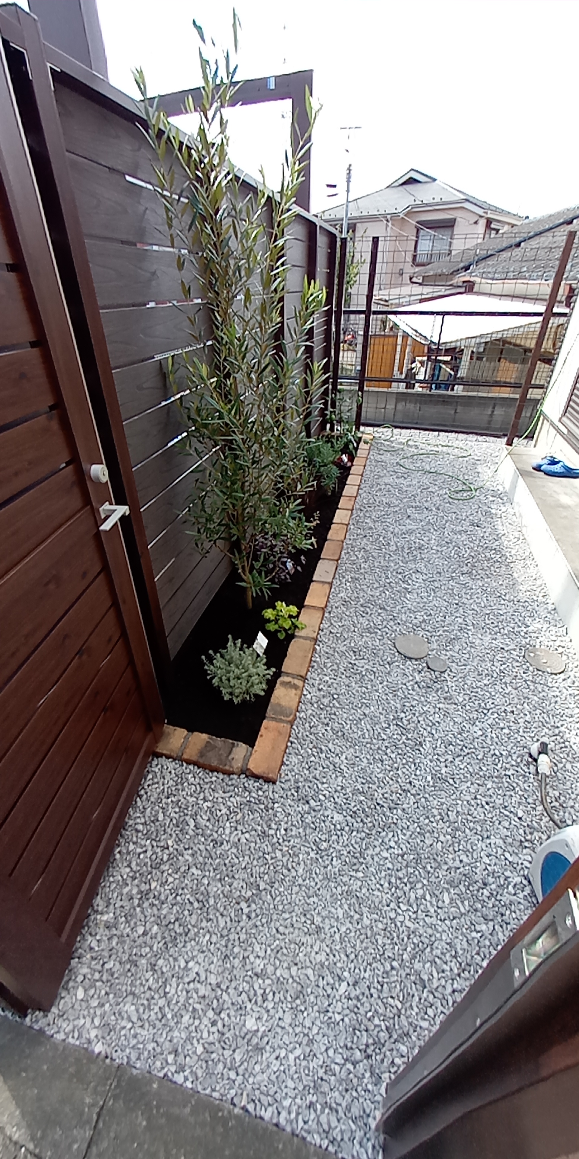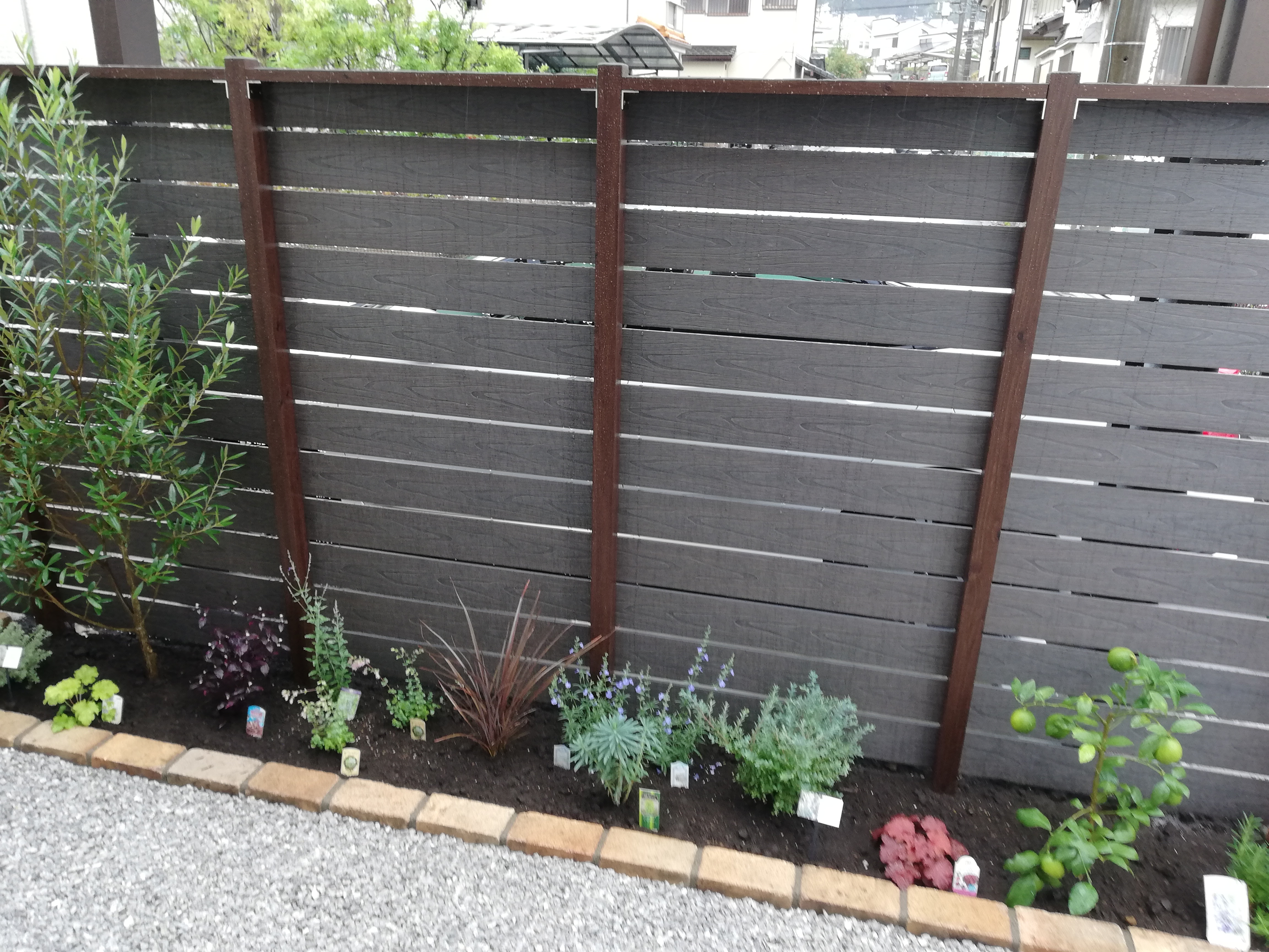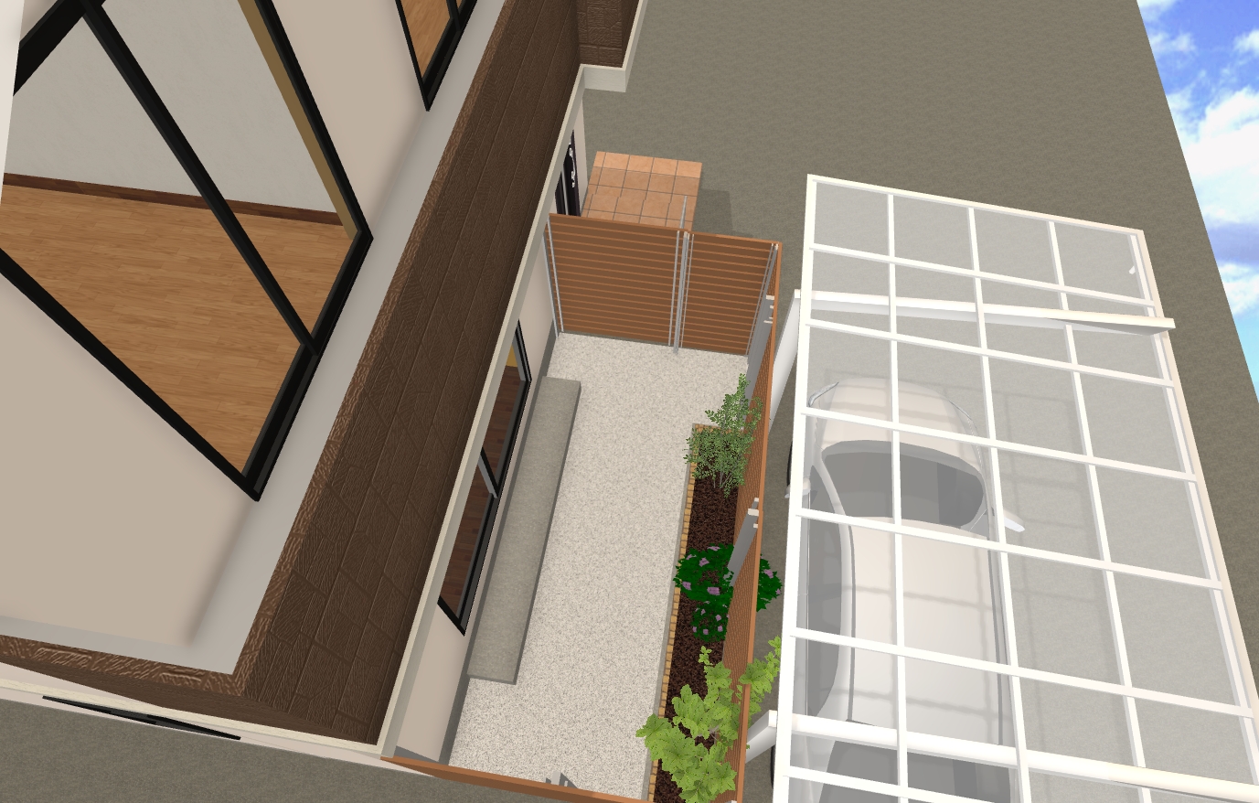 建物との間に塀を設け、緑を楽しめるお庭を計画。