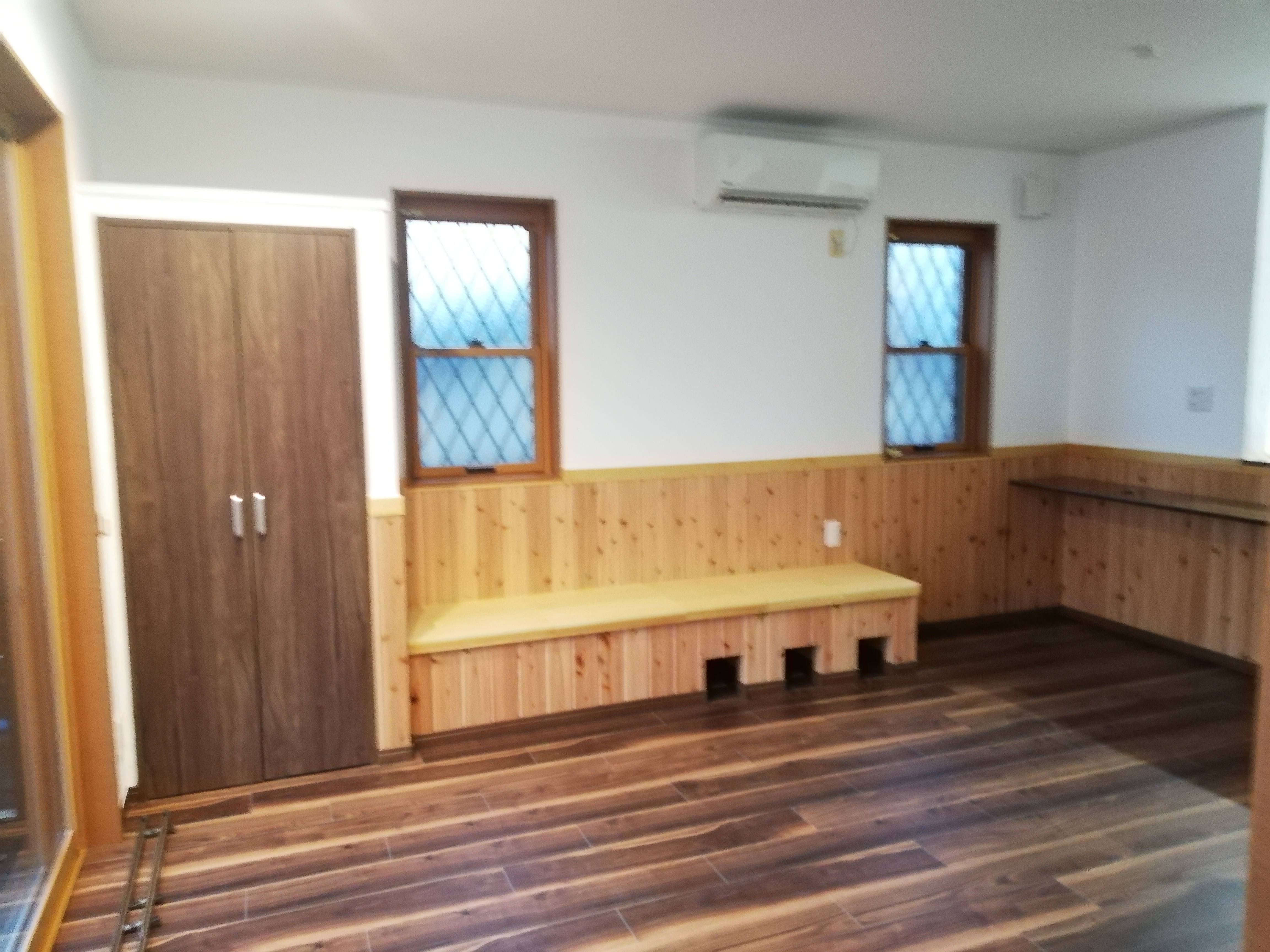 壁は杉材で腰壁を作り、Y様の3匹の愛猫ちゃんへの思いやりがたくさん詰まった