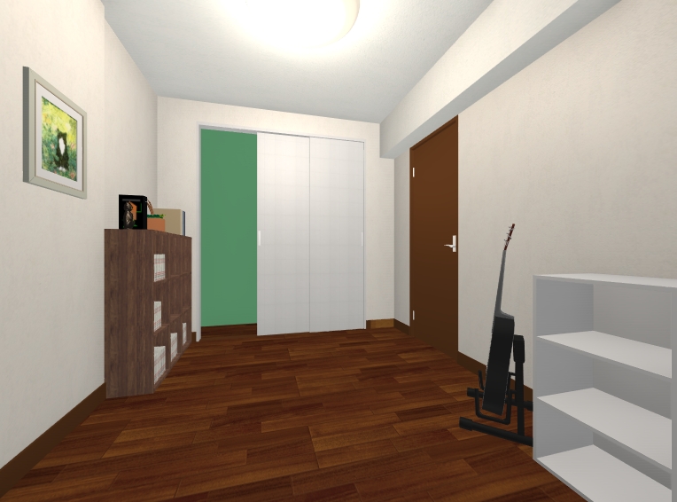 南側のお部屋は既存ドアや枠のお色に合わせて落ち着いたお色を採用