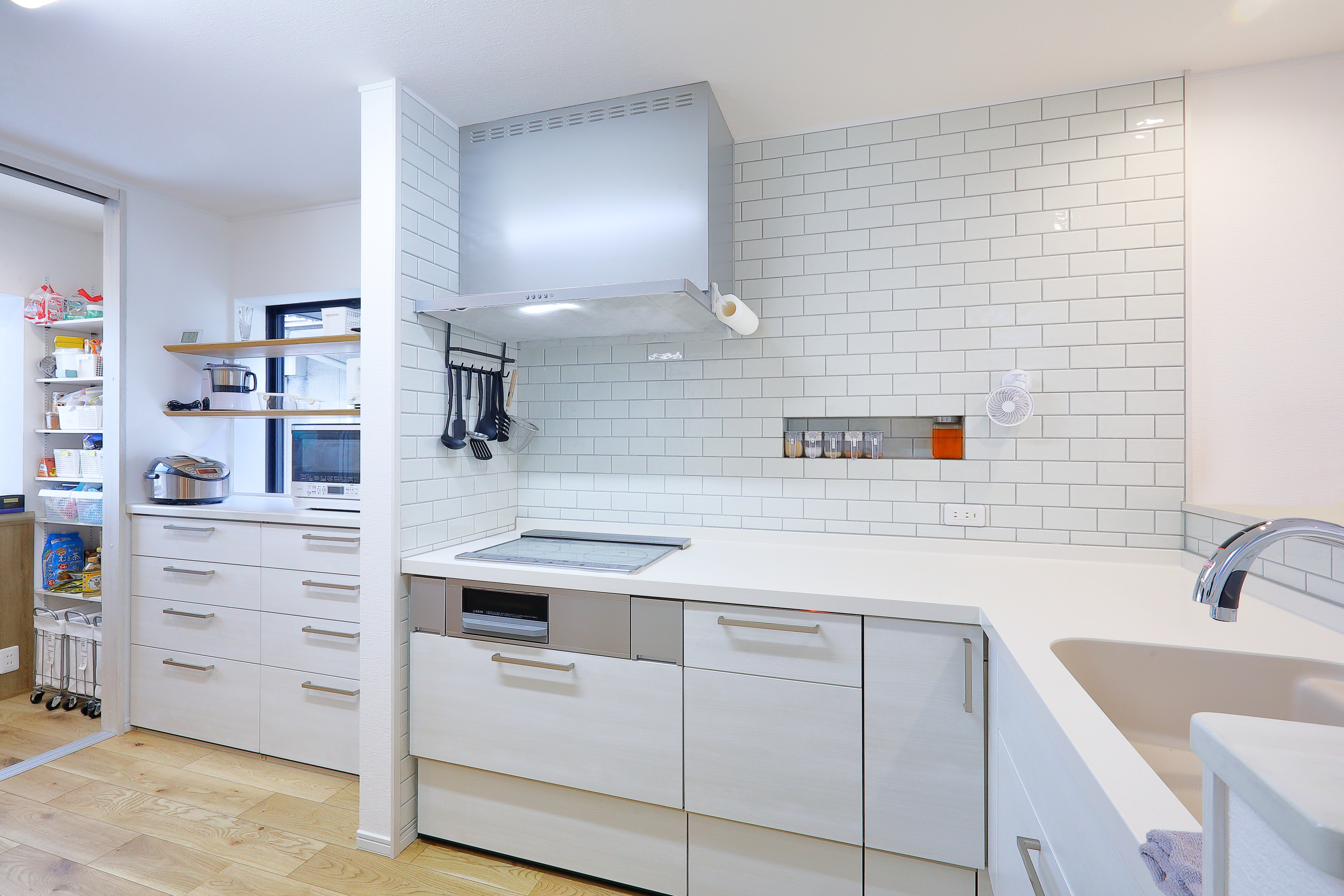 L型の対面キッチンや壁のスパイスニッチも実際にお使いになられていましたが、