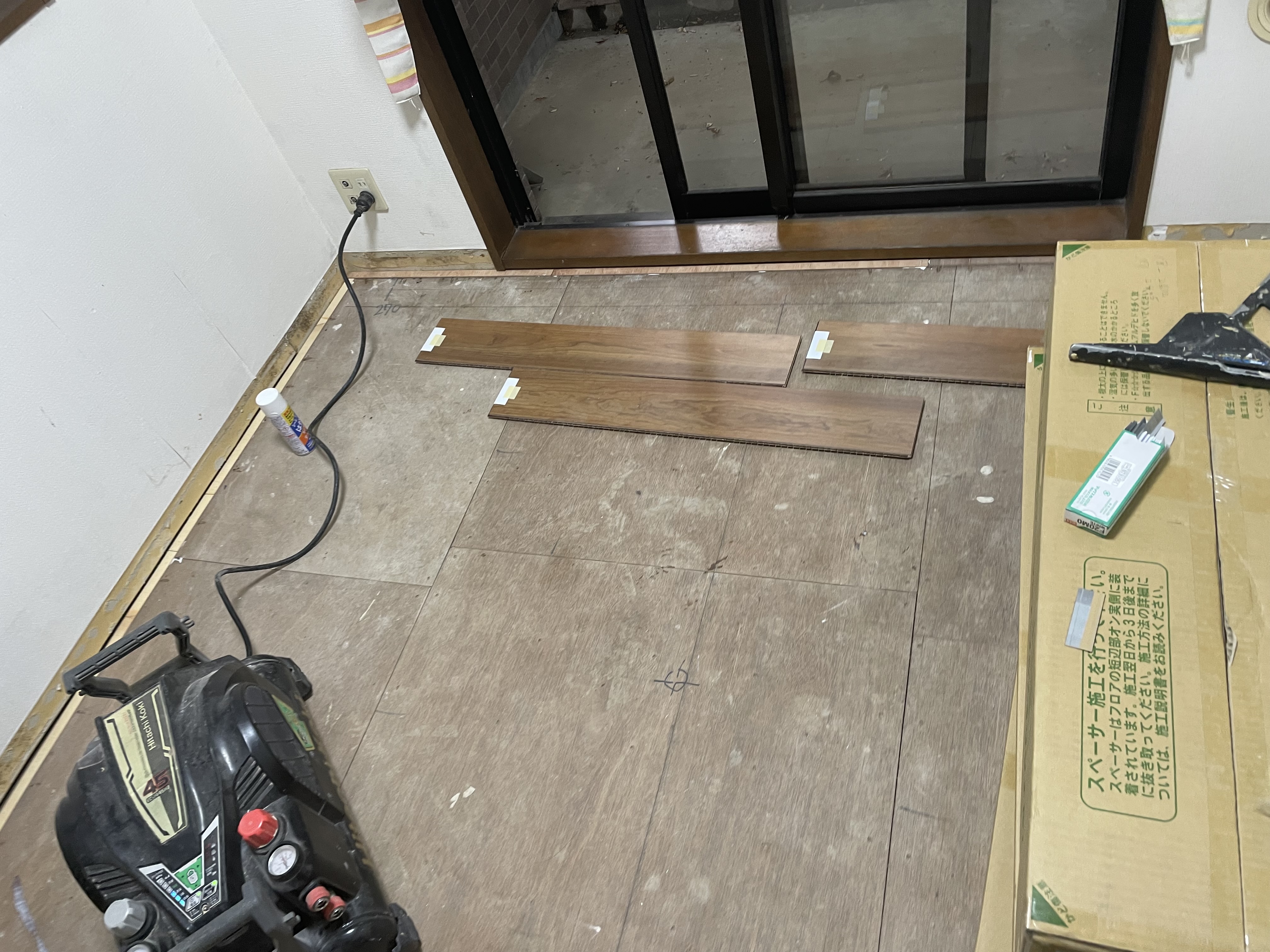 仕上がりをイメージしながら、新しいフローリングを貼っていきます