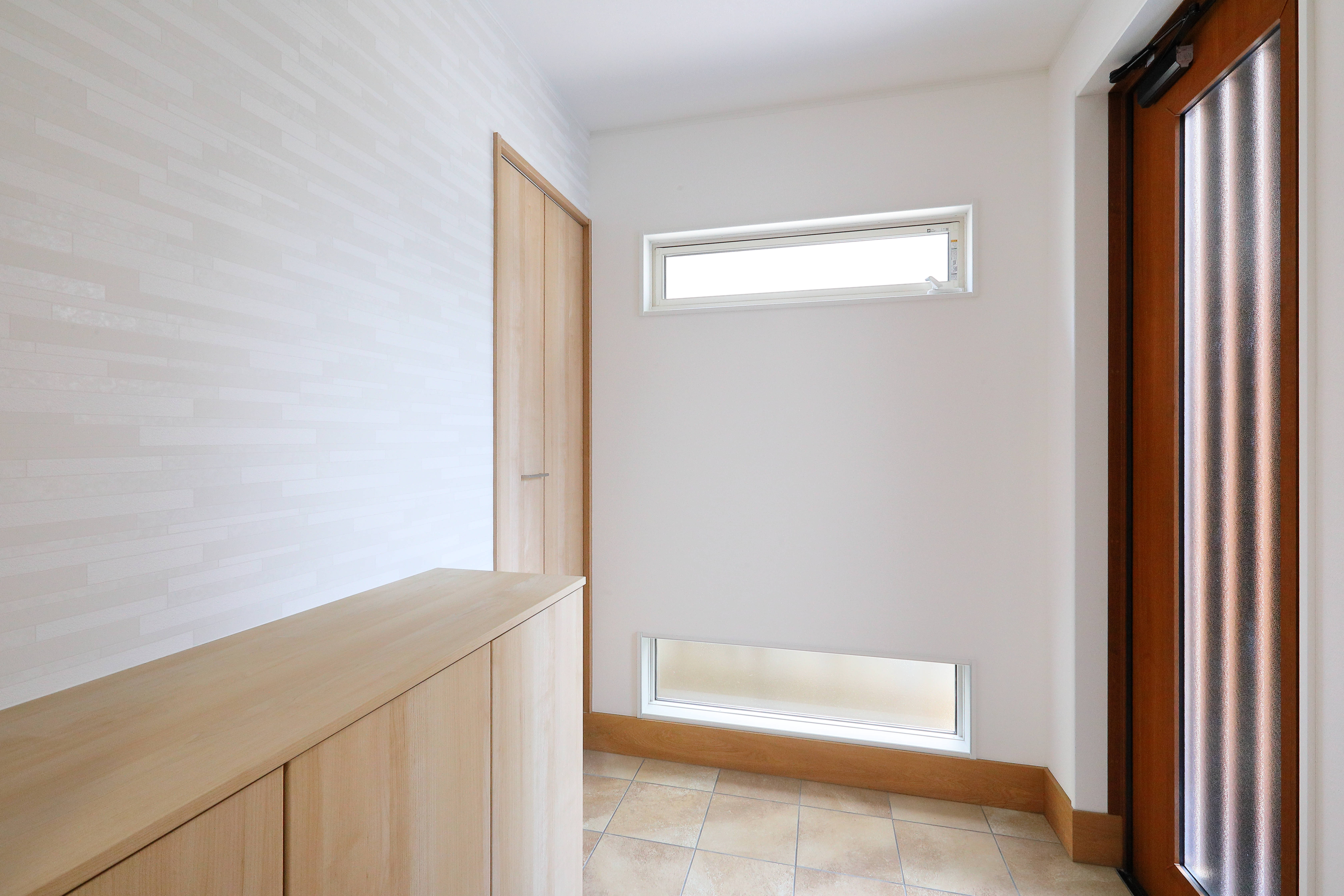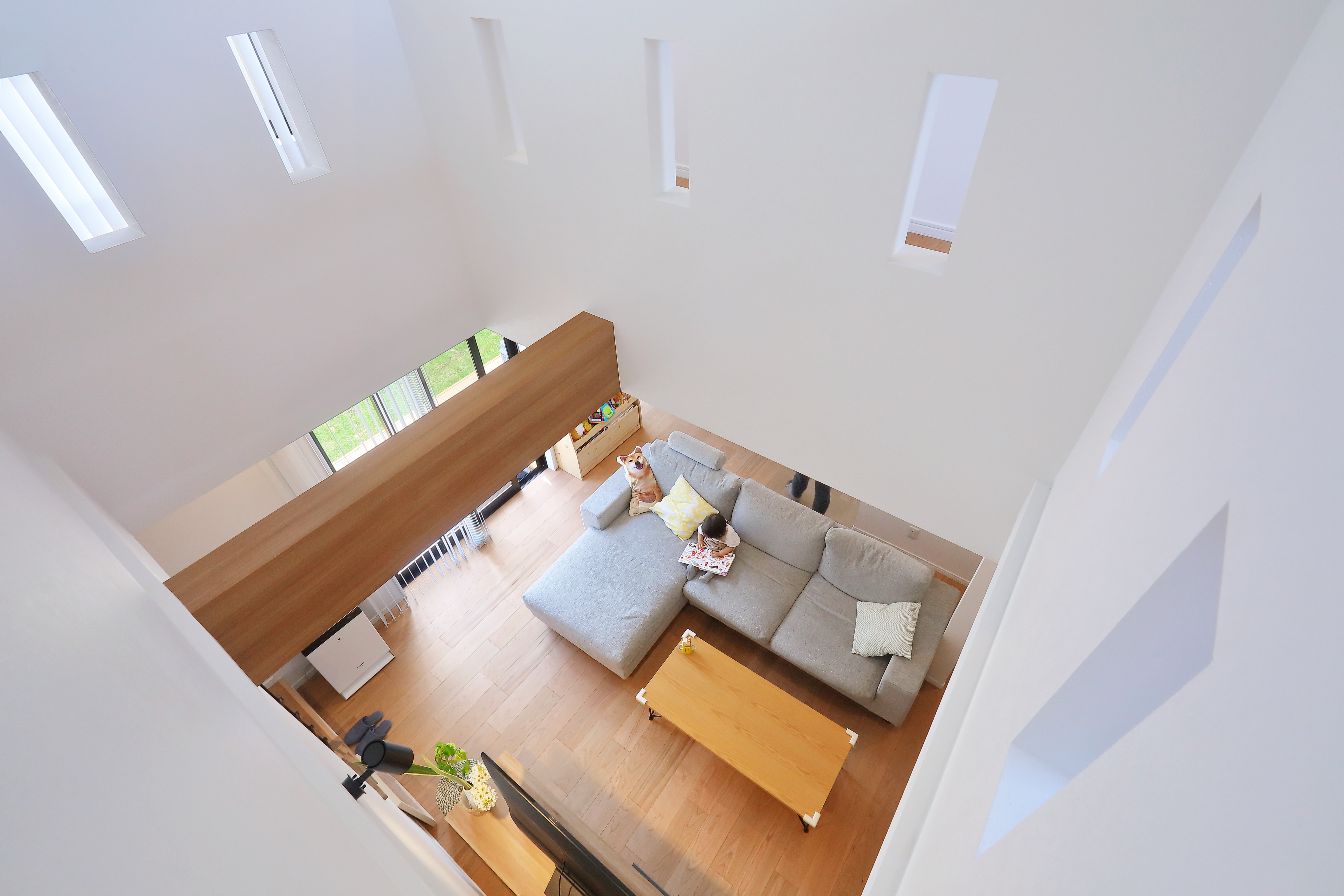 各所に設置した採光窓は、目線の高さにならないよう、打ち合わせを重ねたこだわりポイント![]()