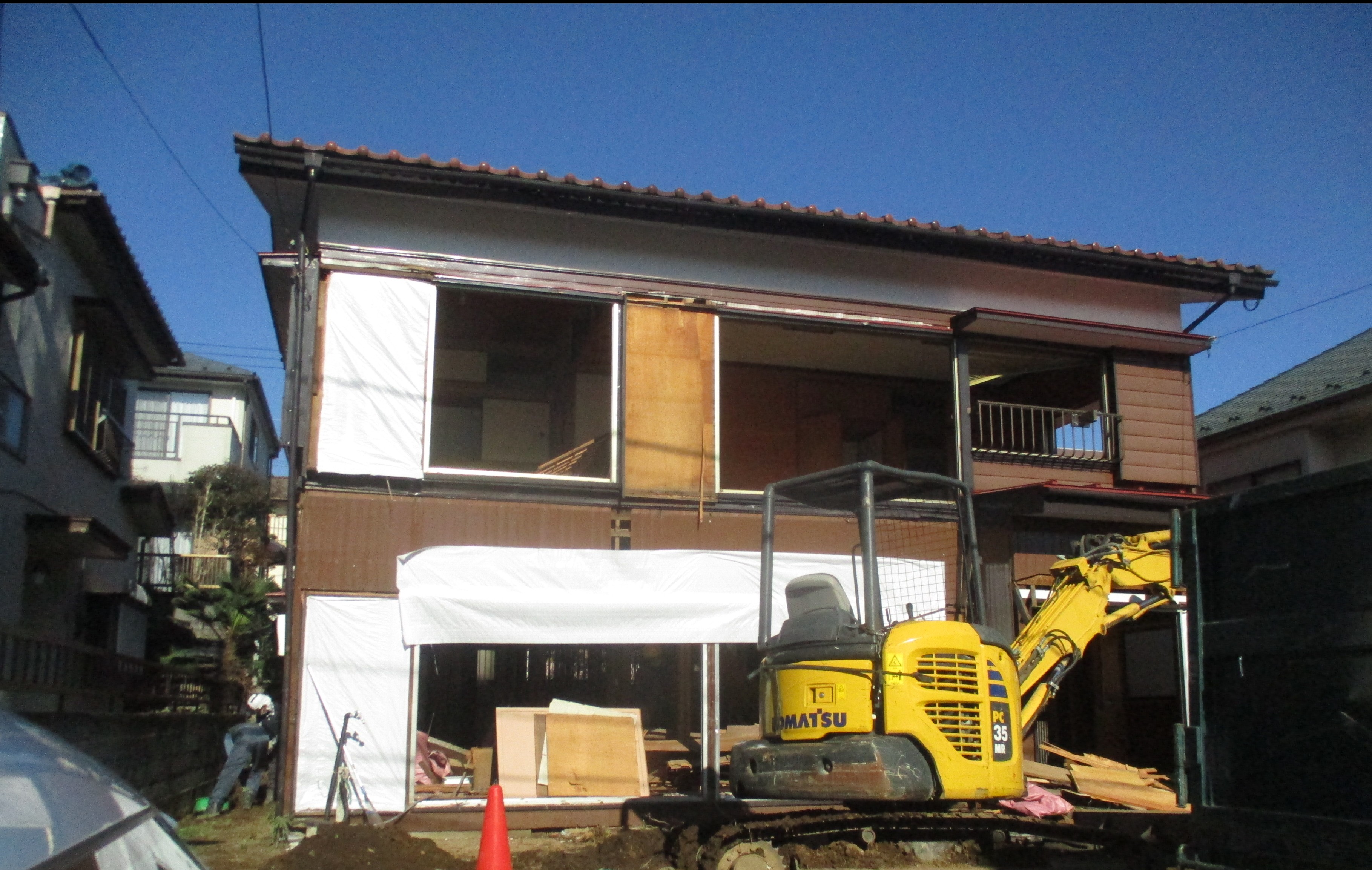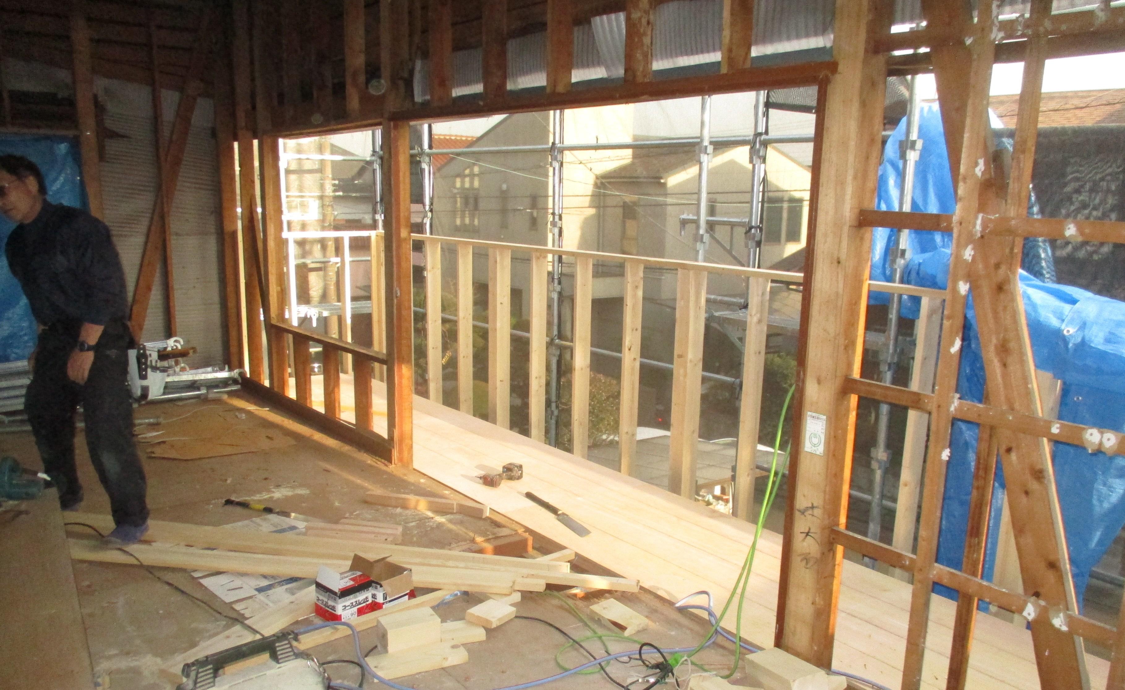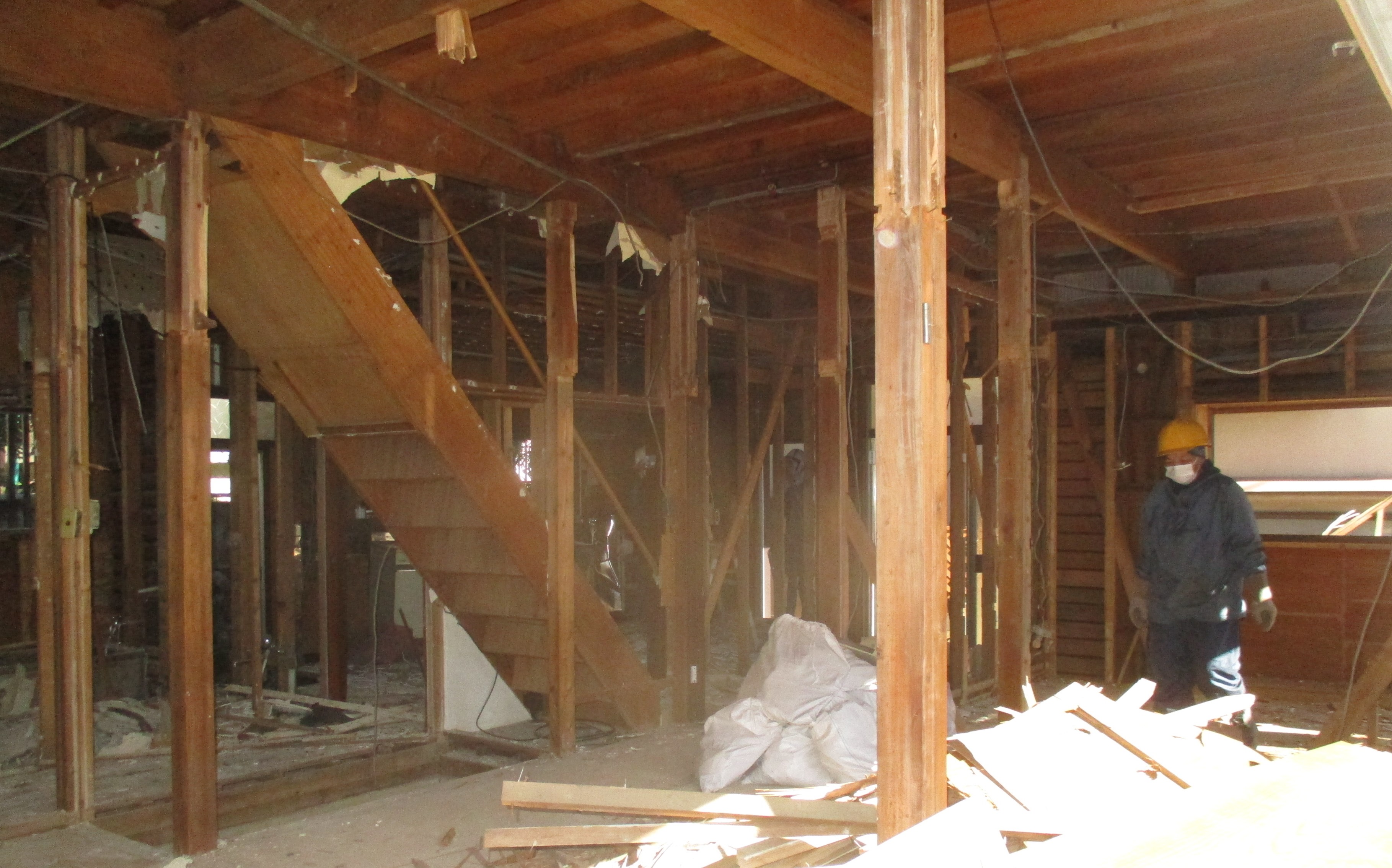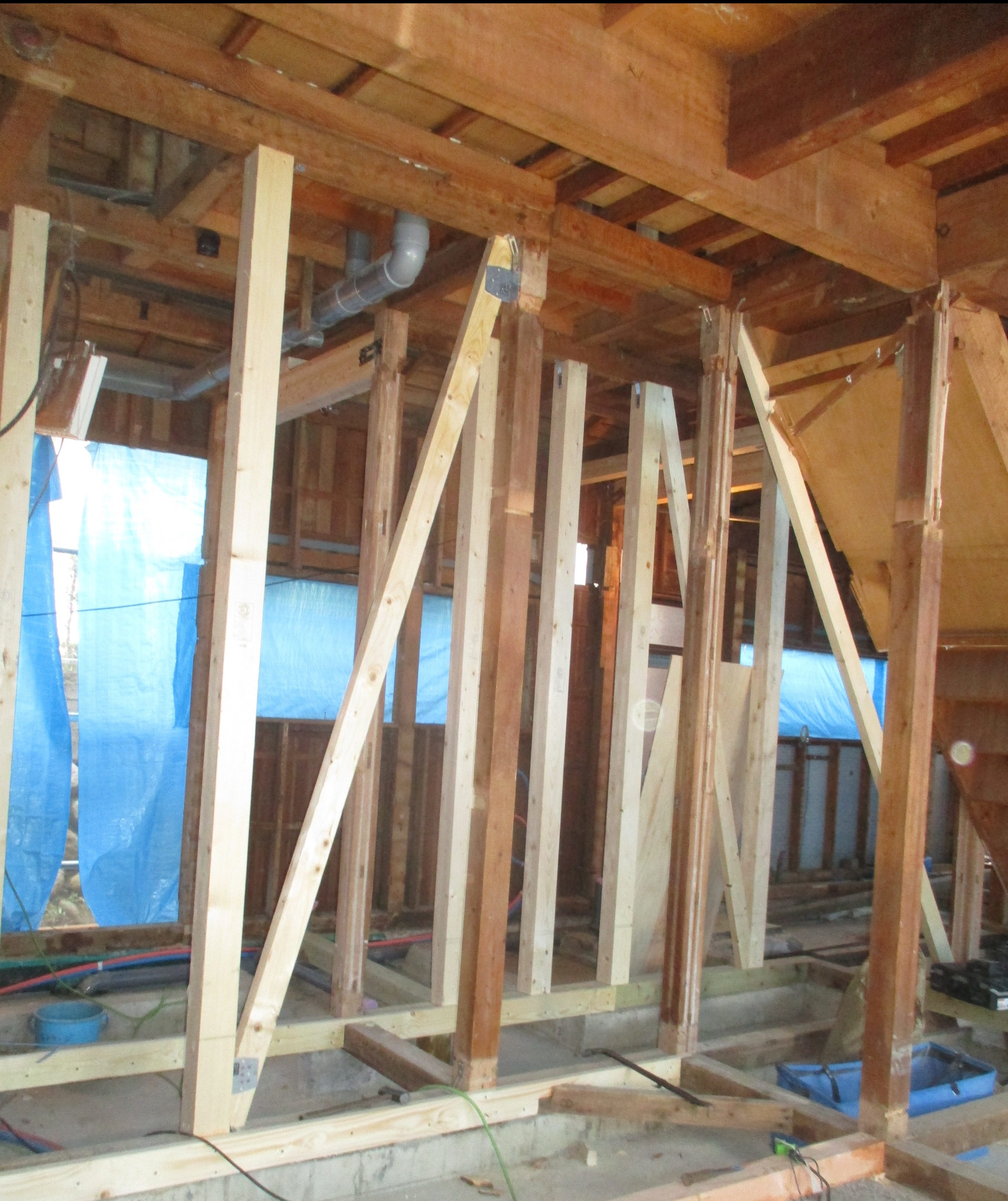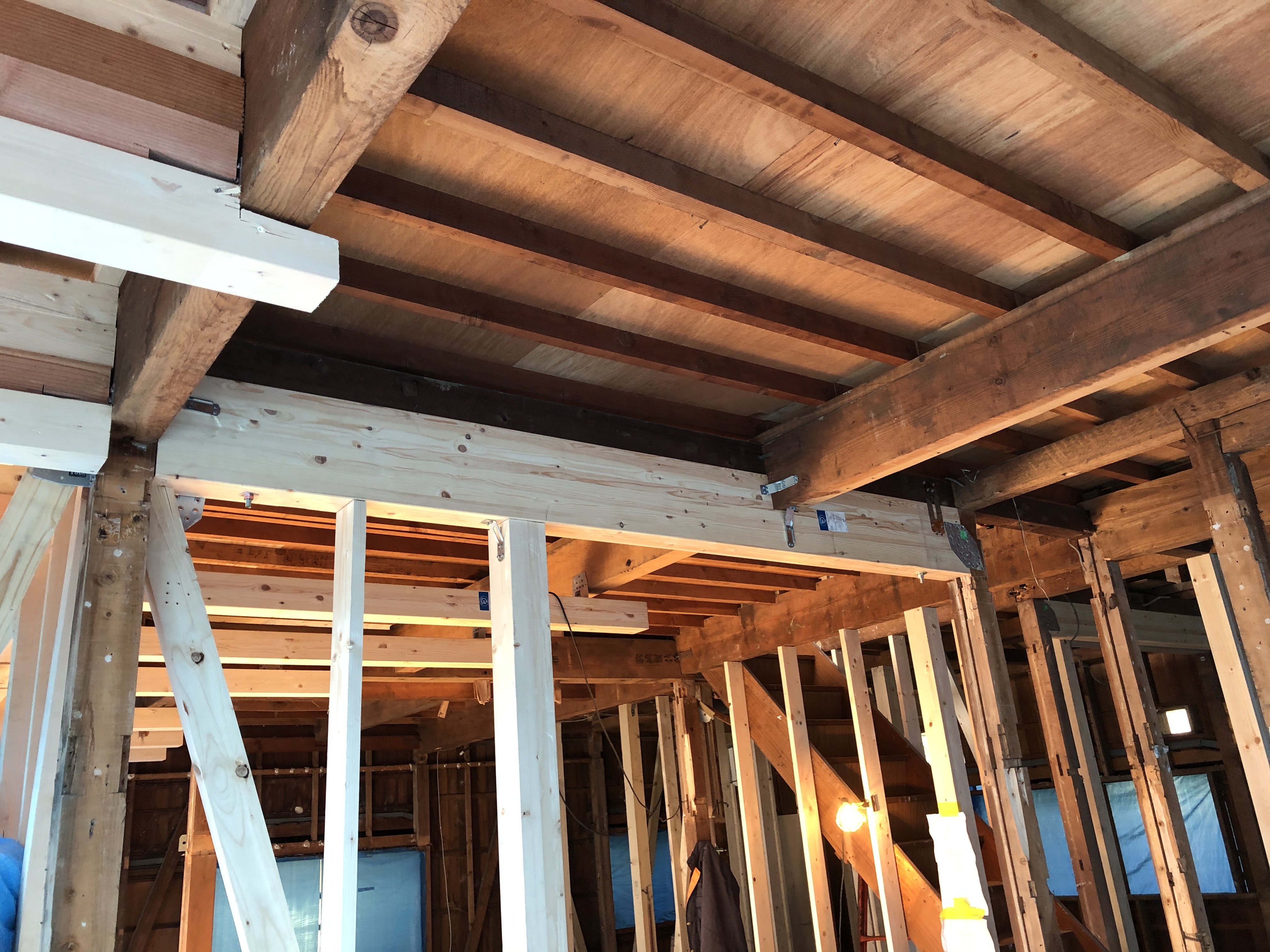 既存の壁や床を取り除き、基礎や筋交いを入れ、耐震強化しながら造り替えていきます![]()