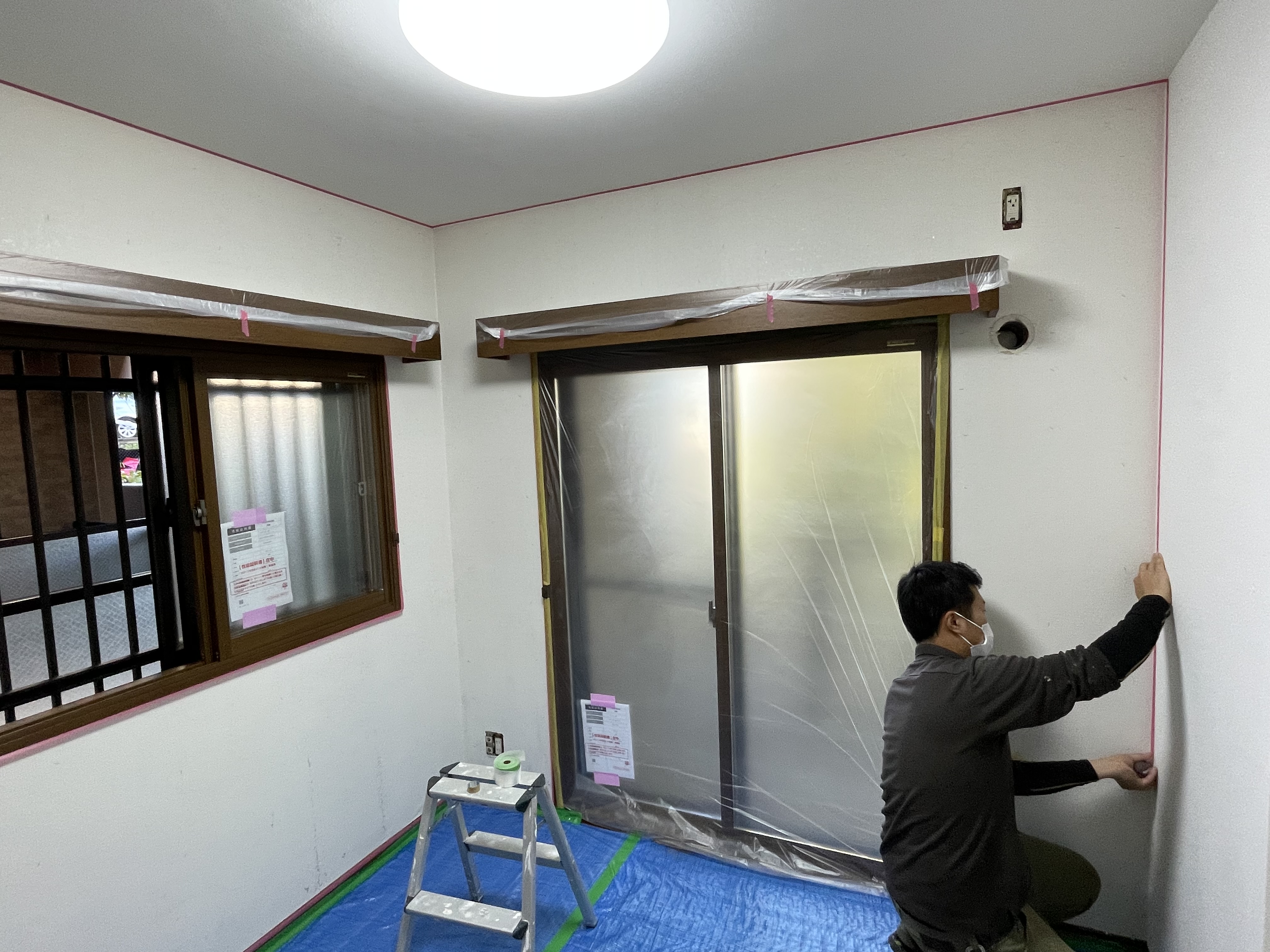 しっかり養生をして下地塗り・漆喰塗り工事に入ります