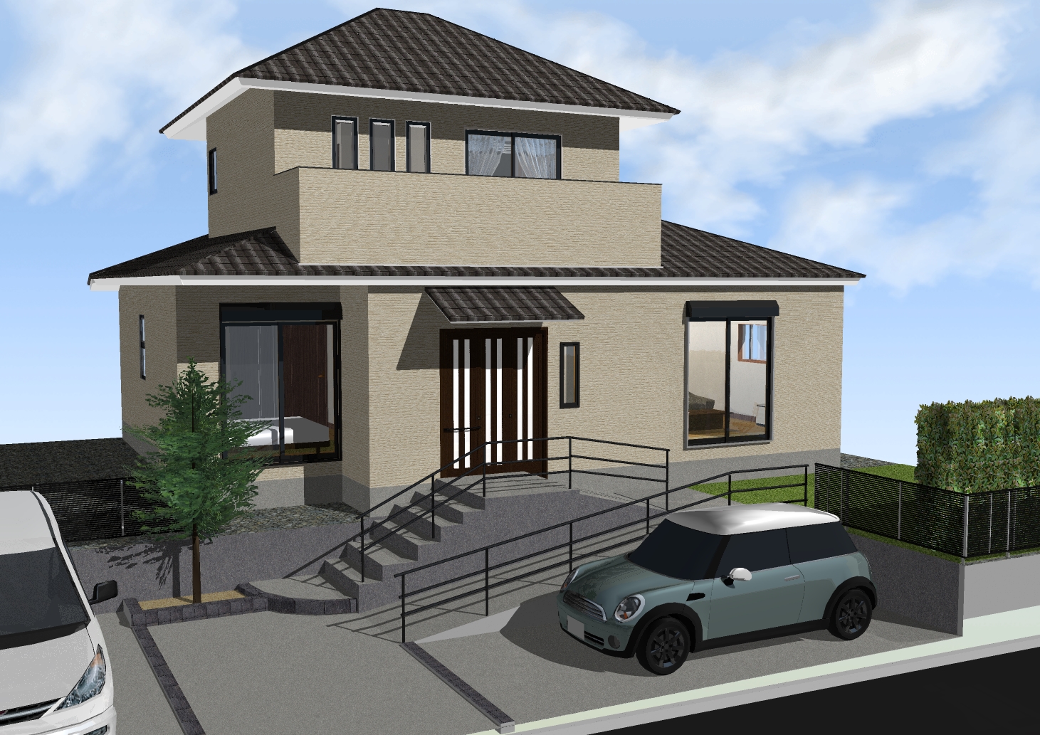 足場が外れ、完成3Dパースに近い新しい外観のお披露目です。