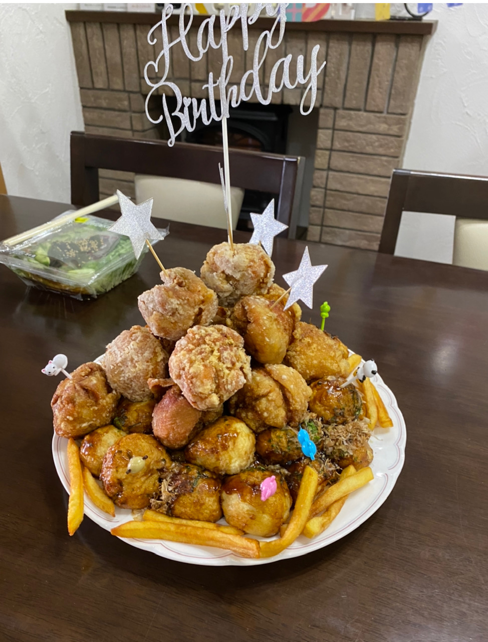 唐揚げ&たこ焼きタワーで、ハッピーバースデー!