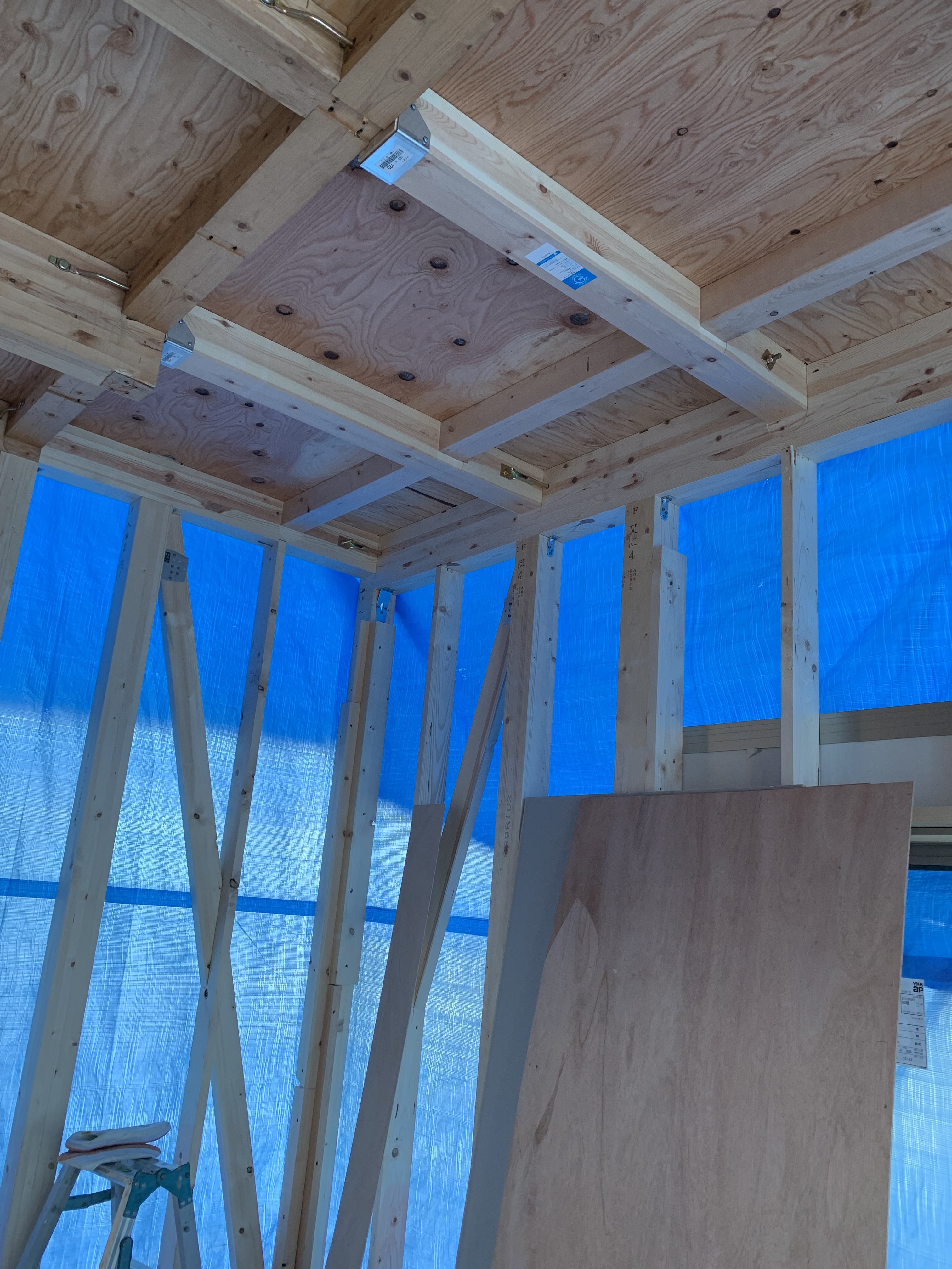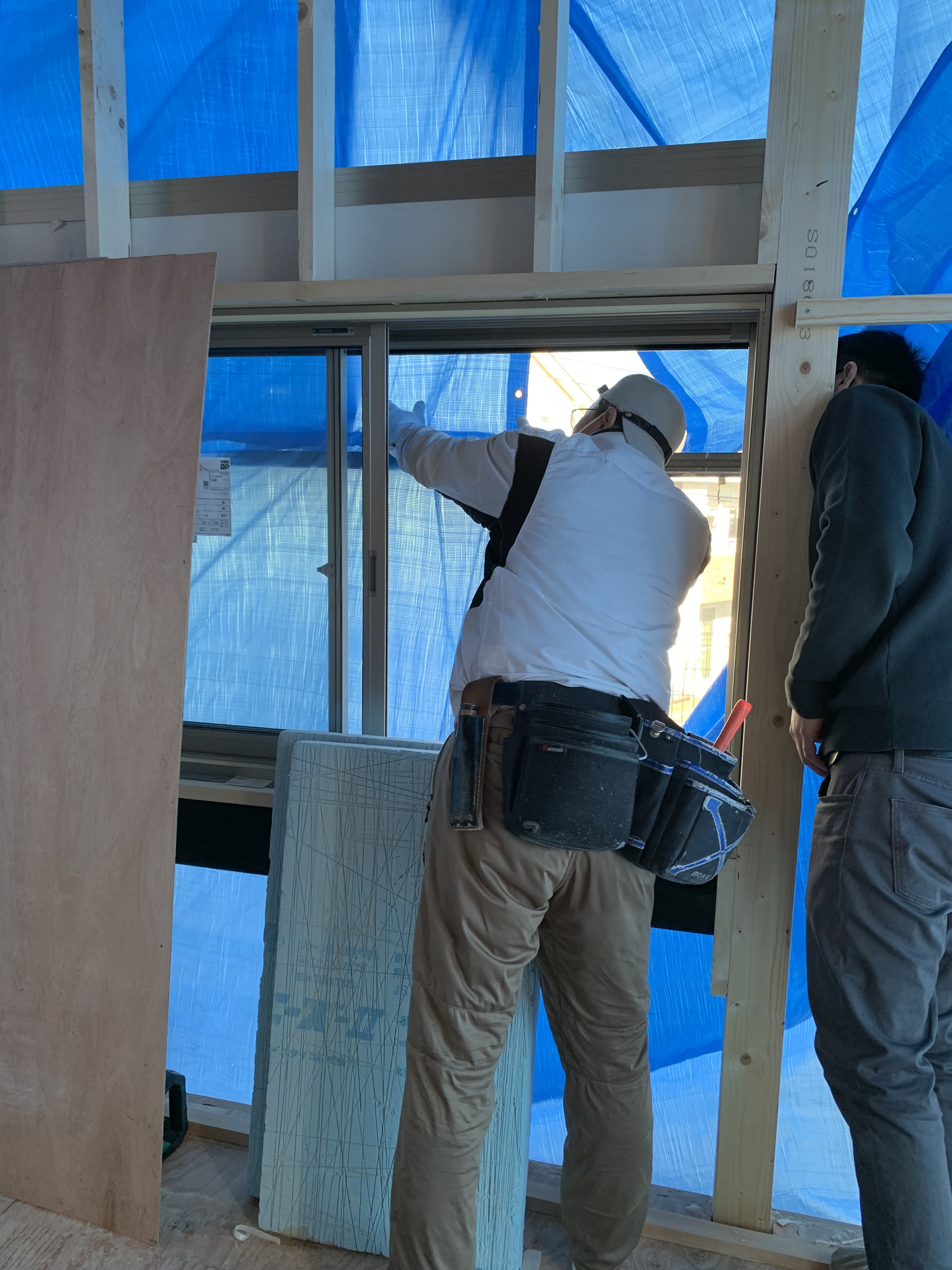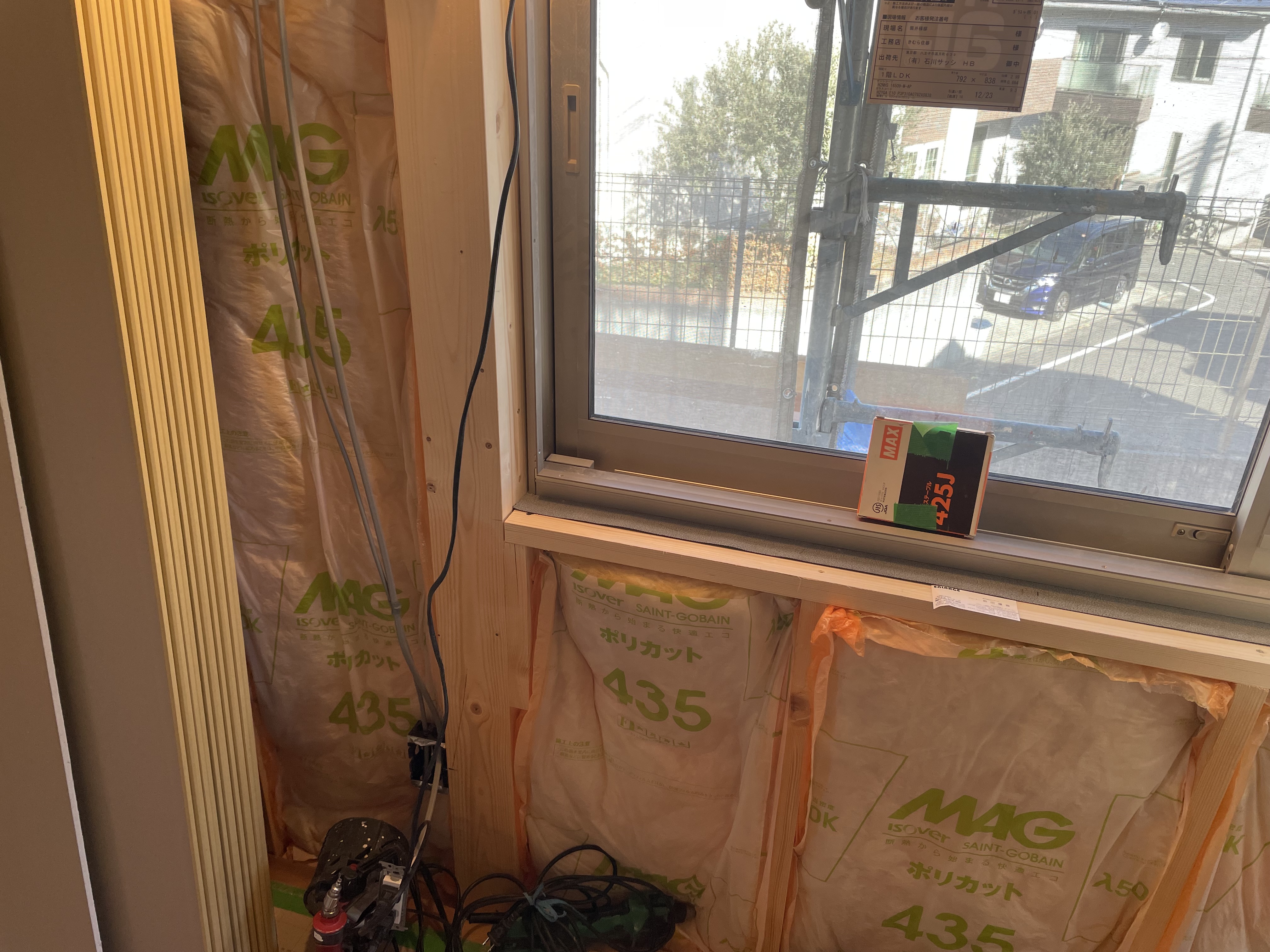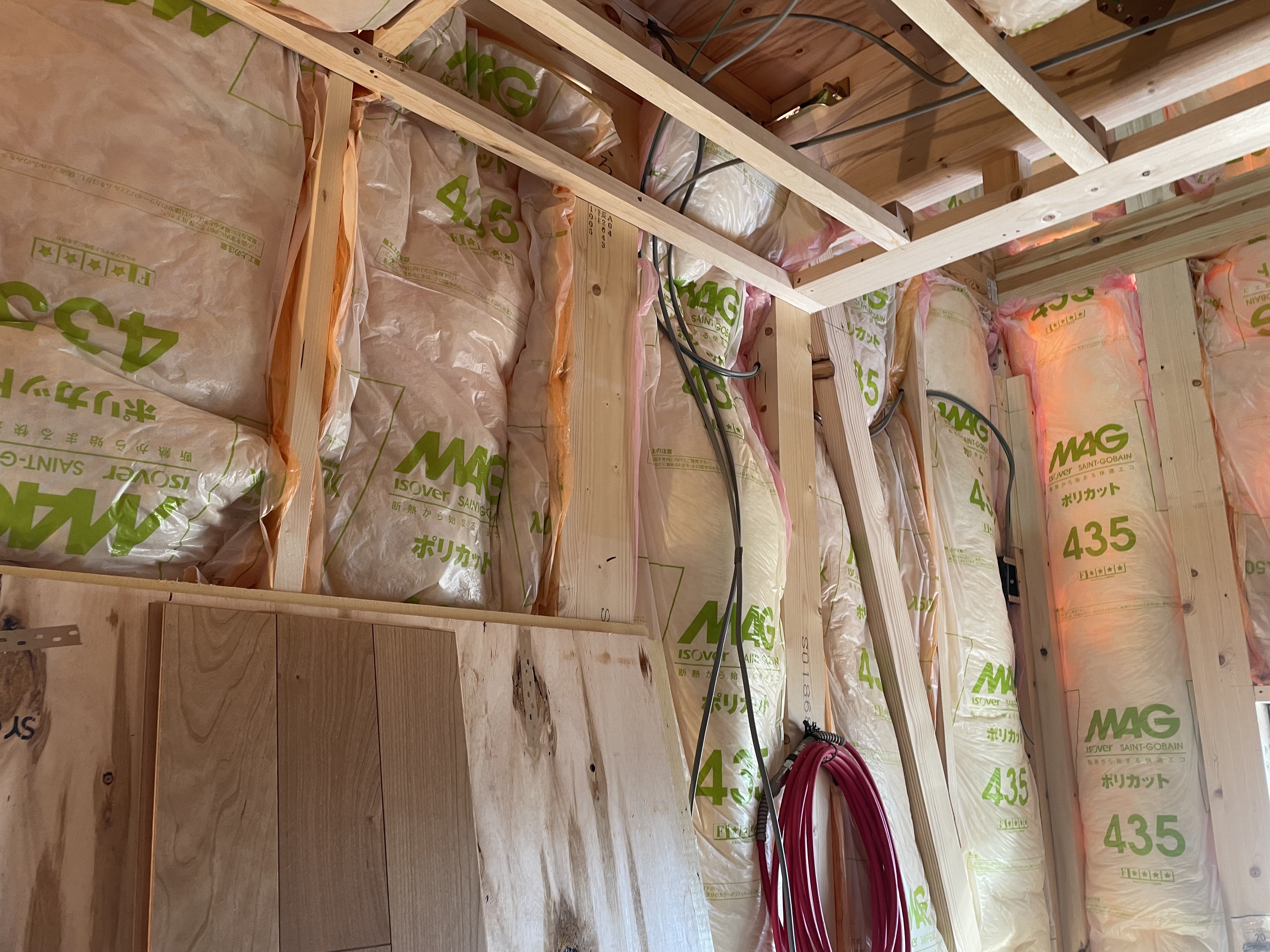 骨組みが完了したら、今度は断熱材をたくさん敷き詰めております