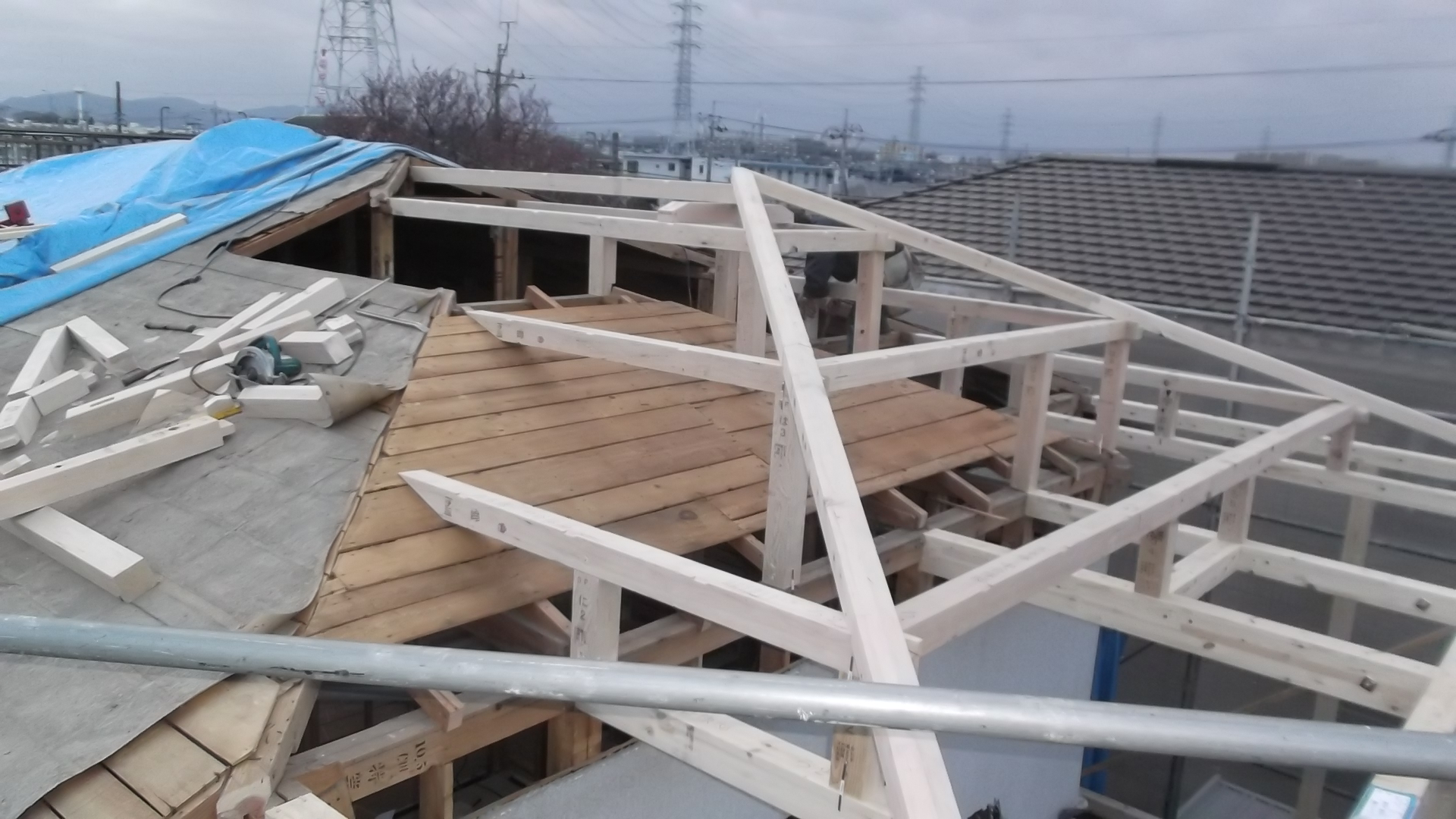 2階を大幅に増築したので、屋根の形も大きく変わります。