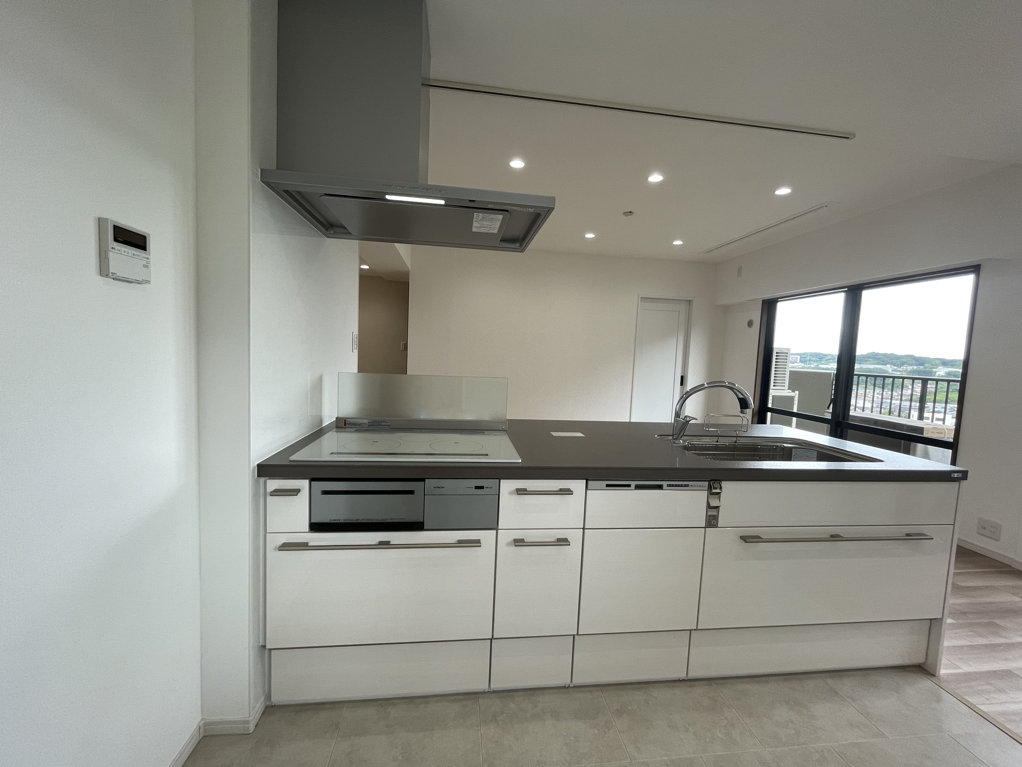 リビング側にはトリプルIHと調理用カウンターを配置して対面キッチンにしました![]()