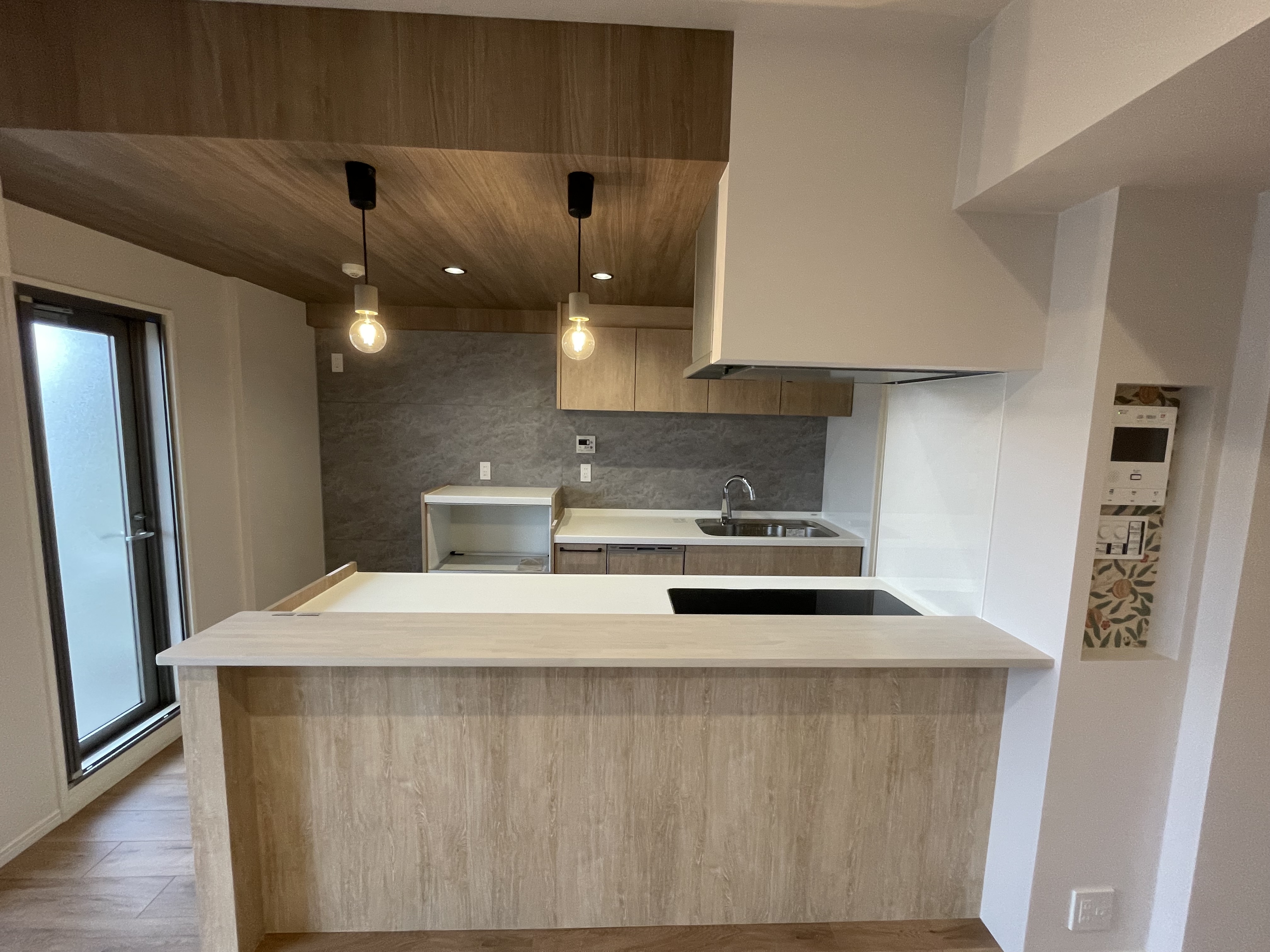 こちらは壁付けキッチンを対面式に変更した事例です。