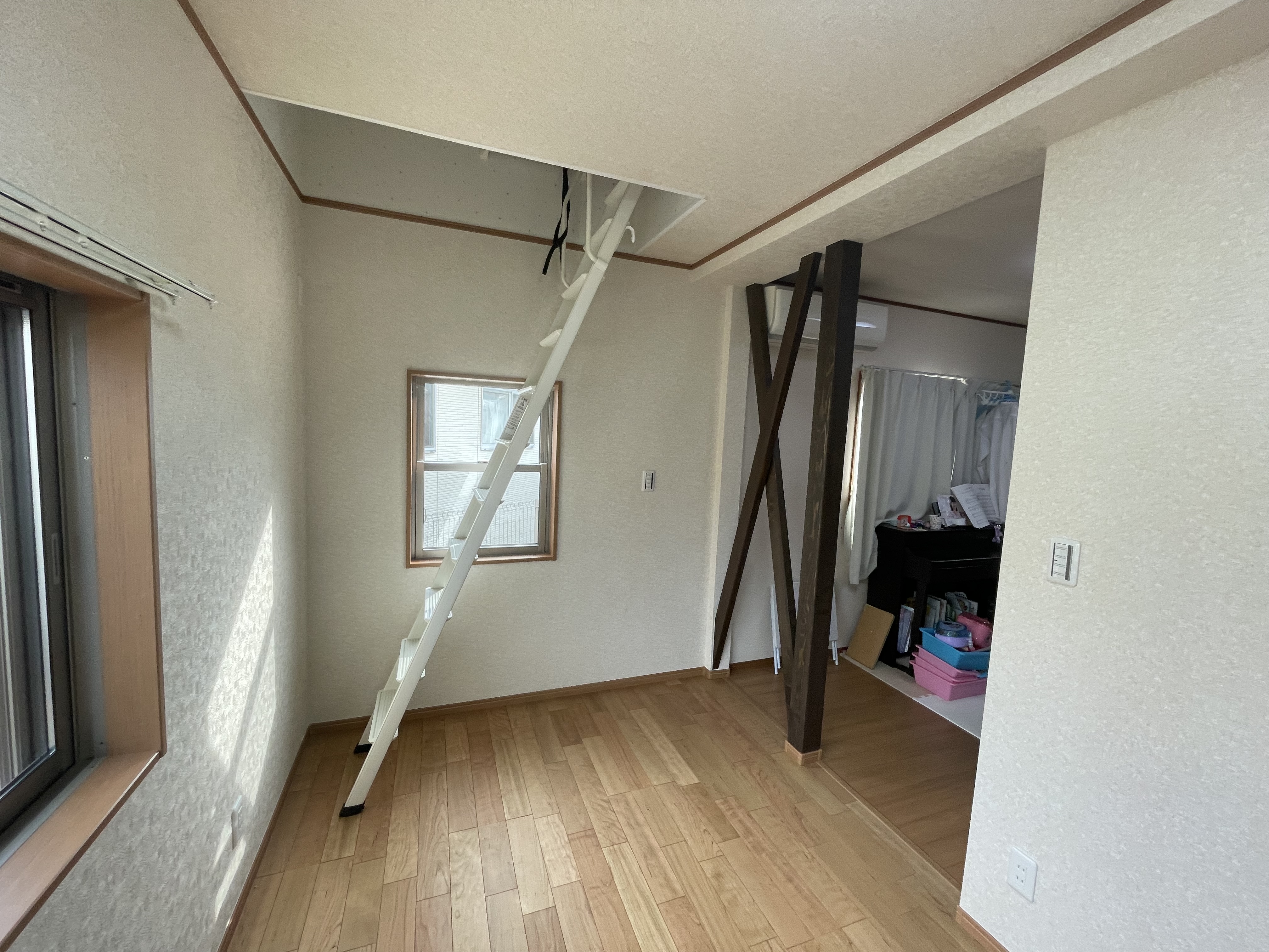 ロフトの床もフローリングを貼って、壁と天井には可愛いクロスを貼りました![]()