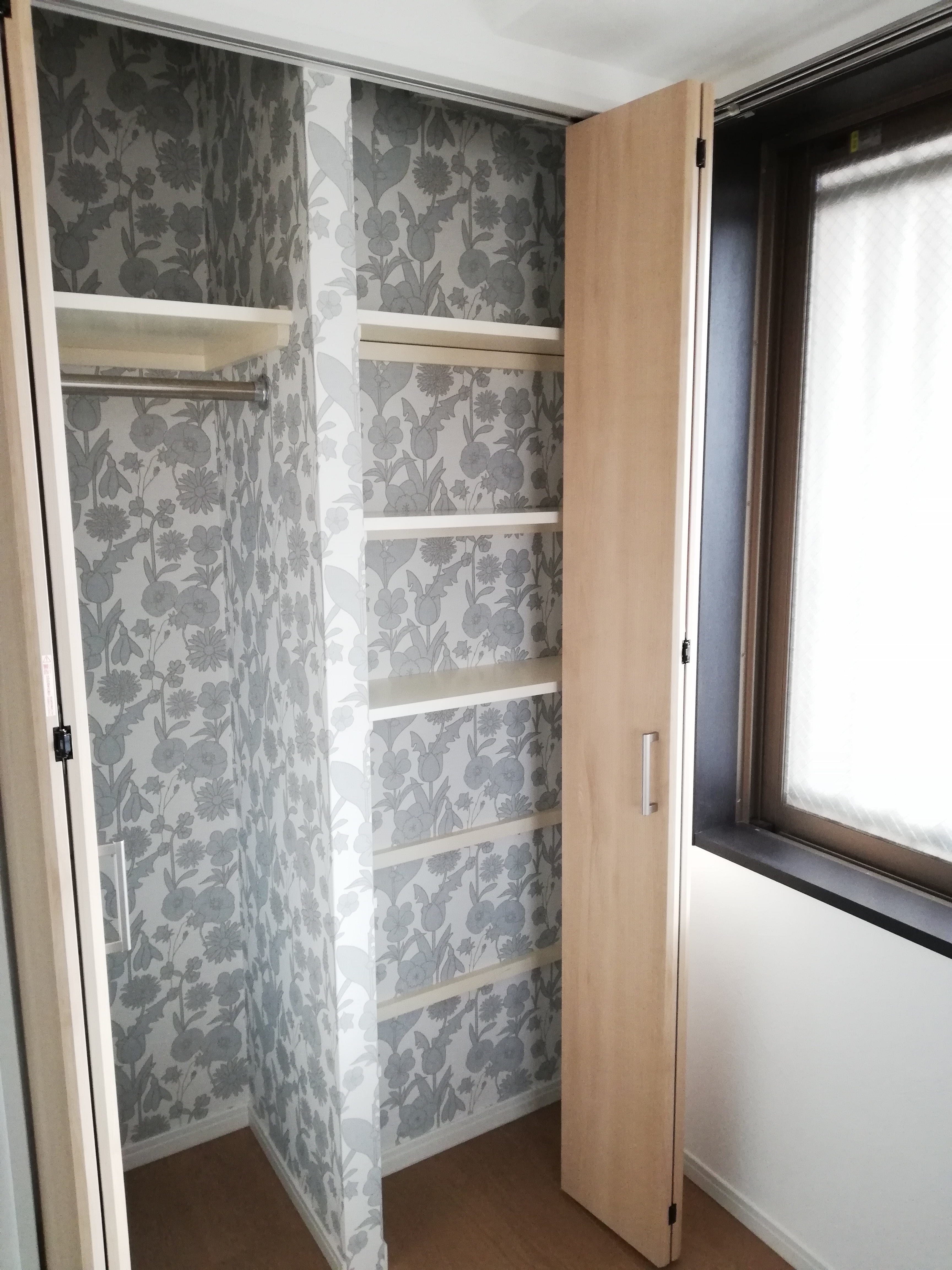 奥様のお部屋のクローゼットはお気に入りのデザインクロス。