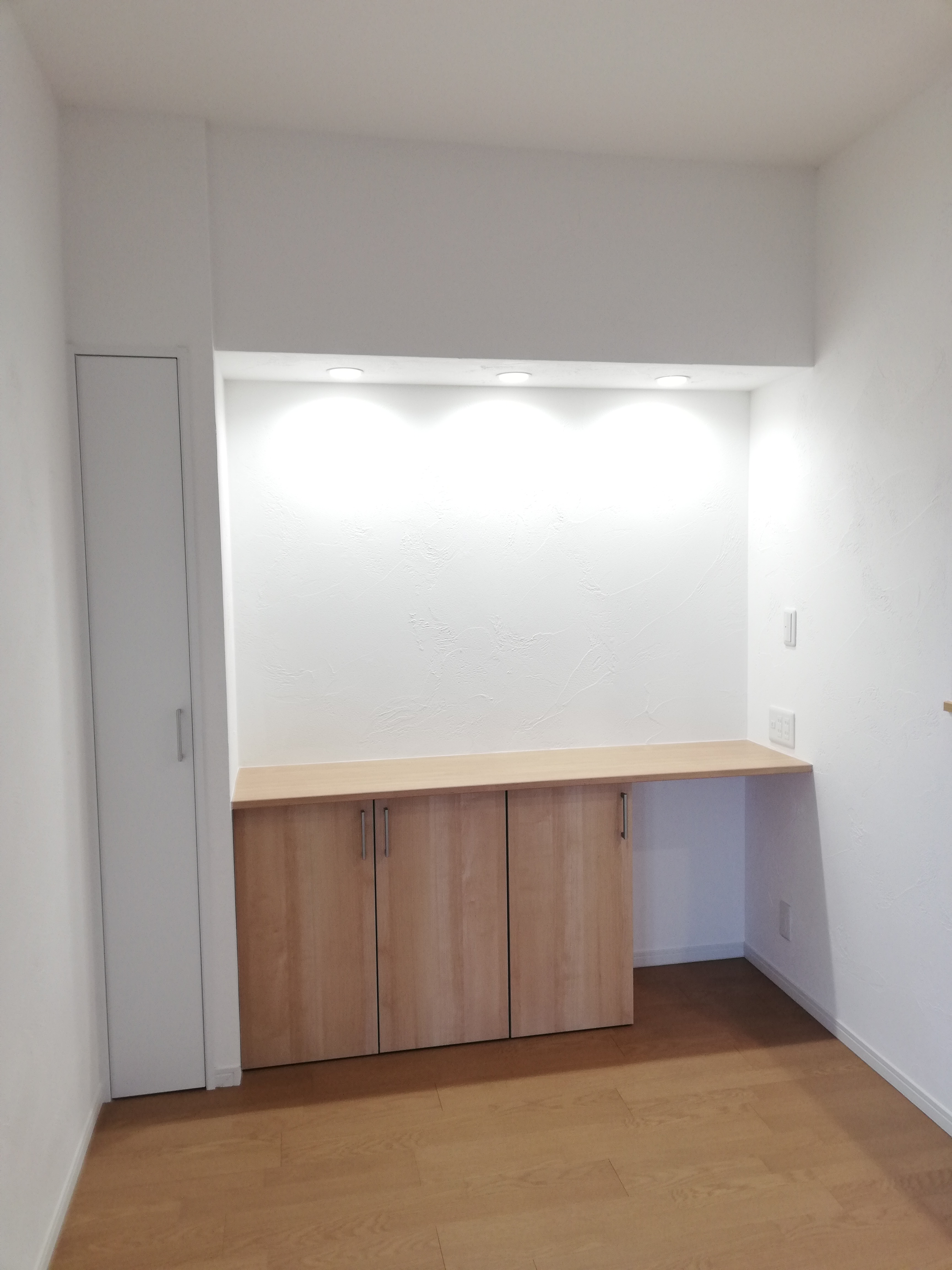 ダイニングスペース脇のワークコーナー兼飾り棚スペース![]()