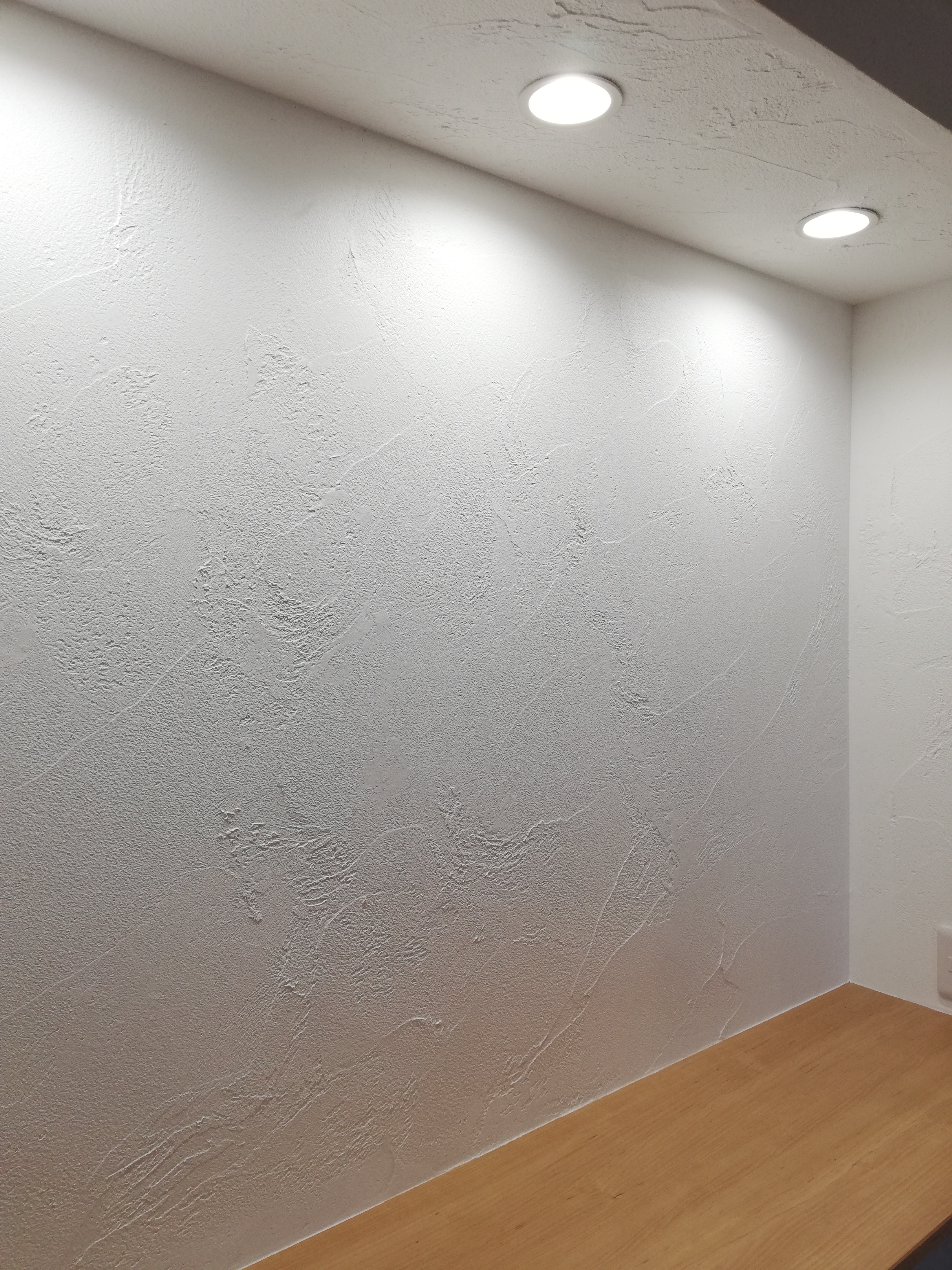 漆喰とはまた違った、優しく落ち着いたイメージの仕上がり。