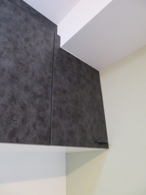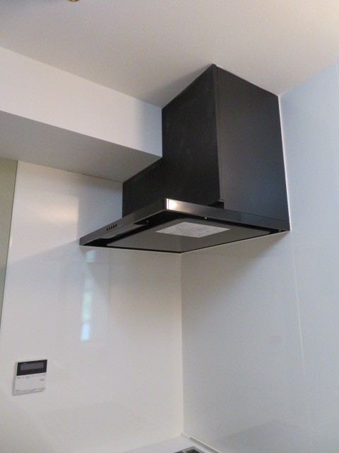 レンジフードはマンションならではの梁型にカットし、ジャストフィット