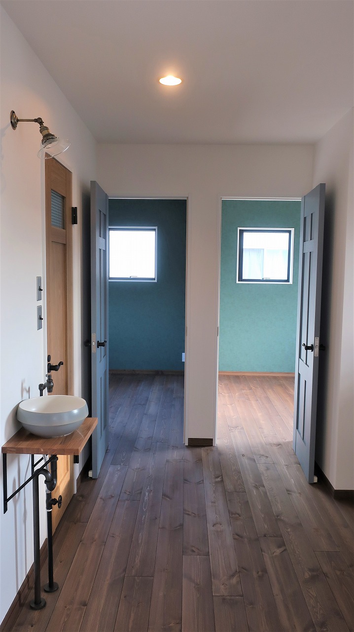 各お部屋の扉はパナソニックの『クラフトレーベル』で、お子様兄弟のお部屋はブルーグレーのかっこいいお色が素敵です♪