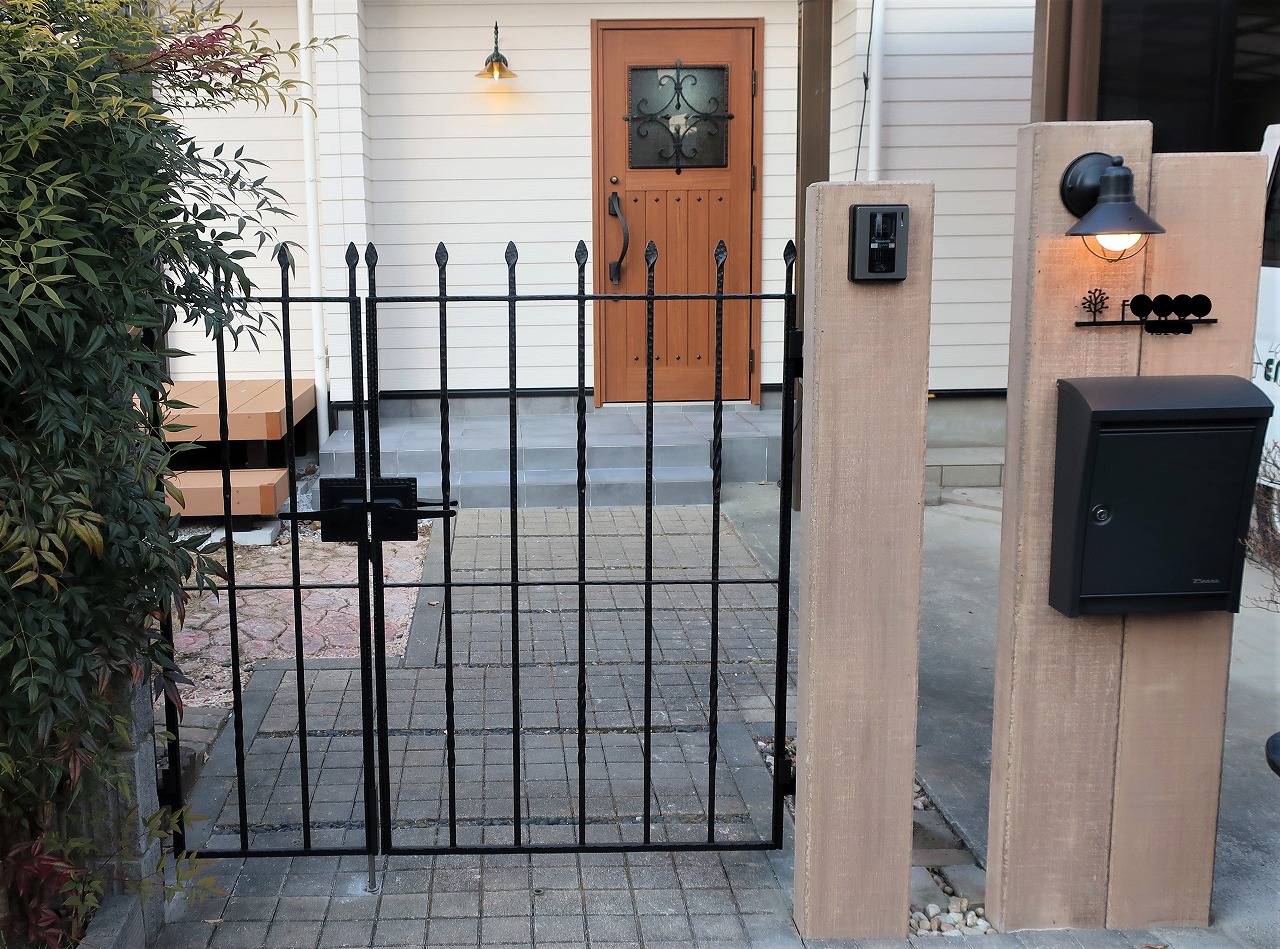 そしてお家の顔でもある門まわりは、コンクリート擬木とアイアン調の門扉でかっこいい雰囲気に生まれ変わりました!