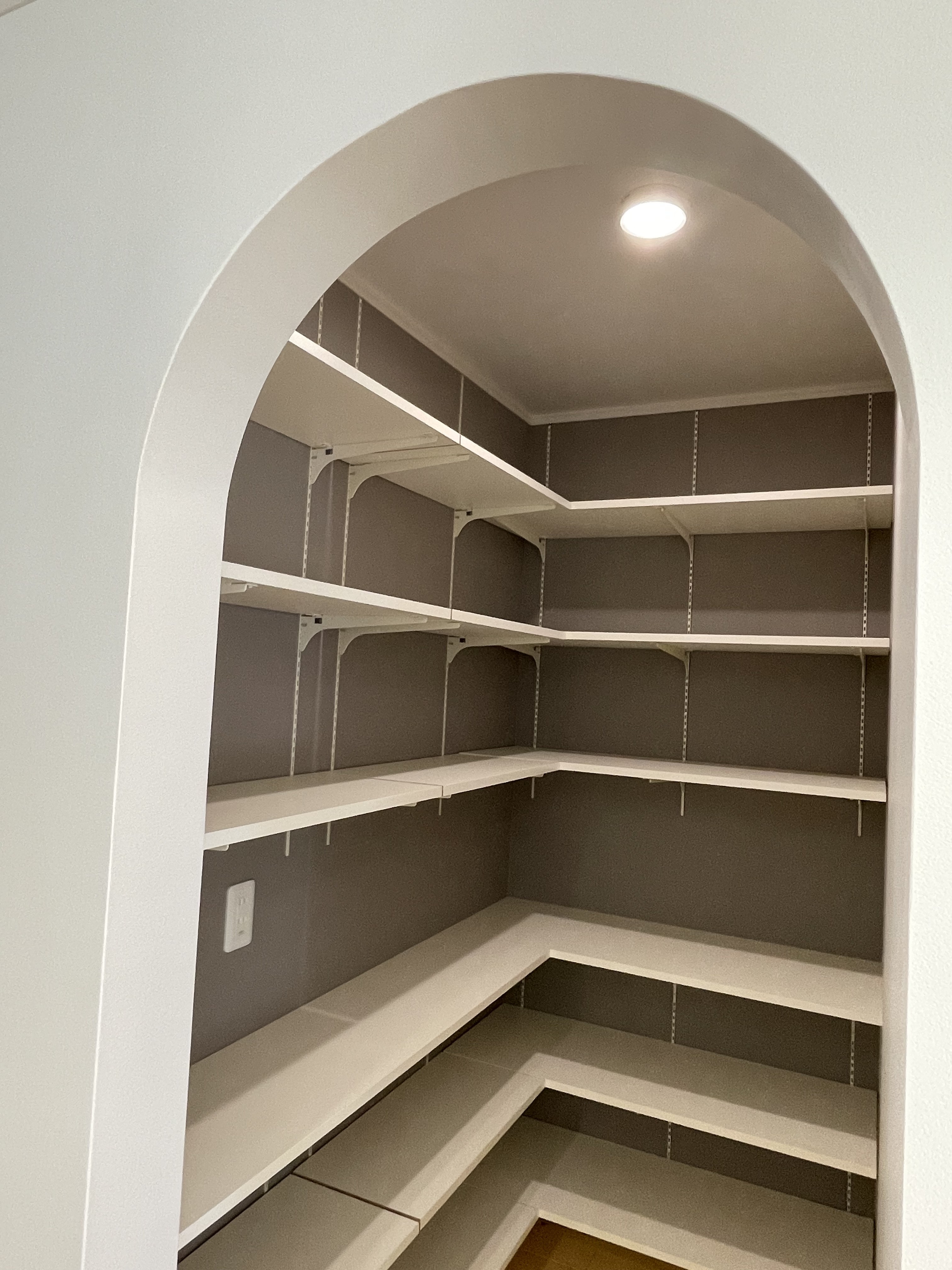 パントリーの入り口はアール型の開口でデザインさせていただきました