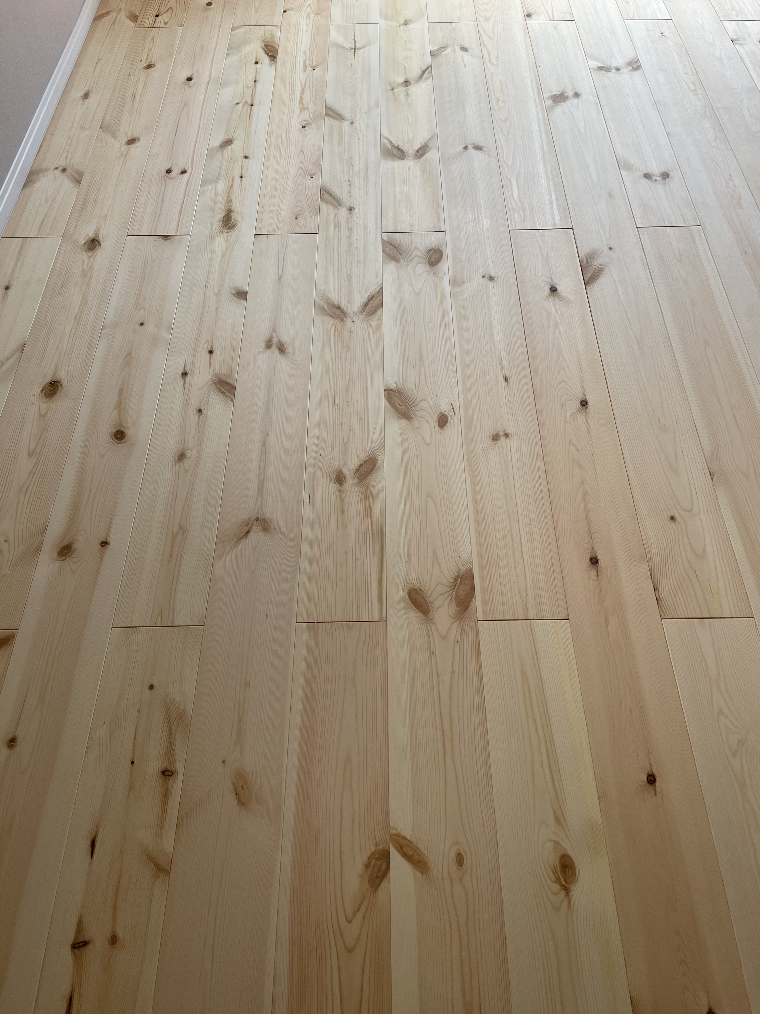 床は暖かみのある無垢のパインフローリングに、自然塗料 (リボス) を施しました