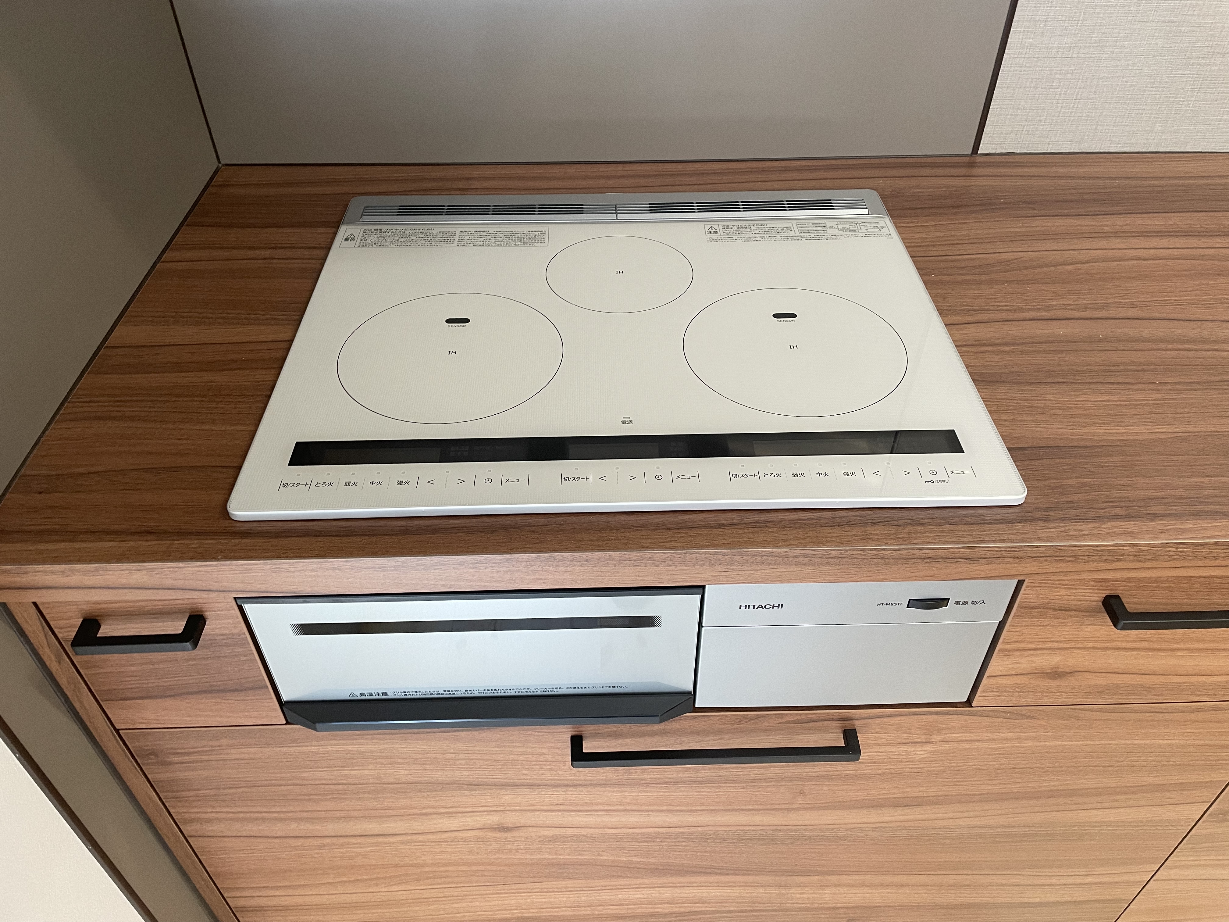 ホワイトのIHクッキングヒーターを組み込んだので、とてもスタイリッシュです