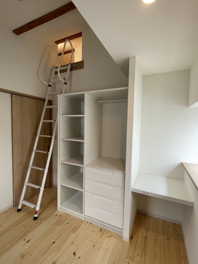 ハシゴの横の白い家具は、造作のオリジナル家具です![]()