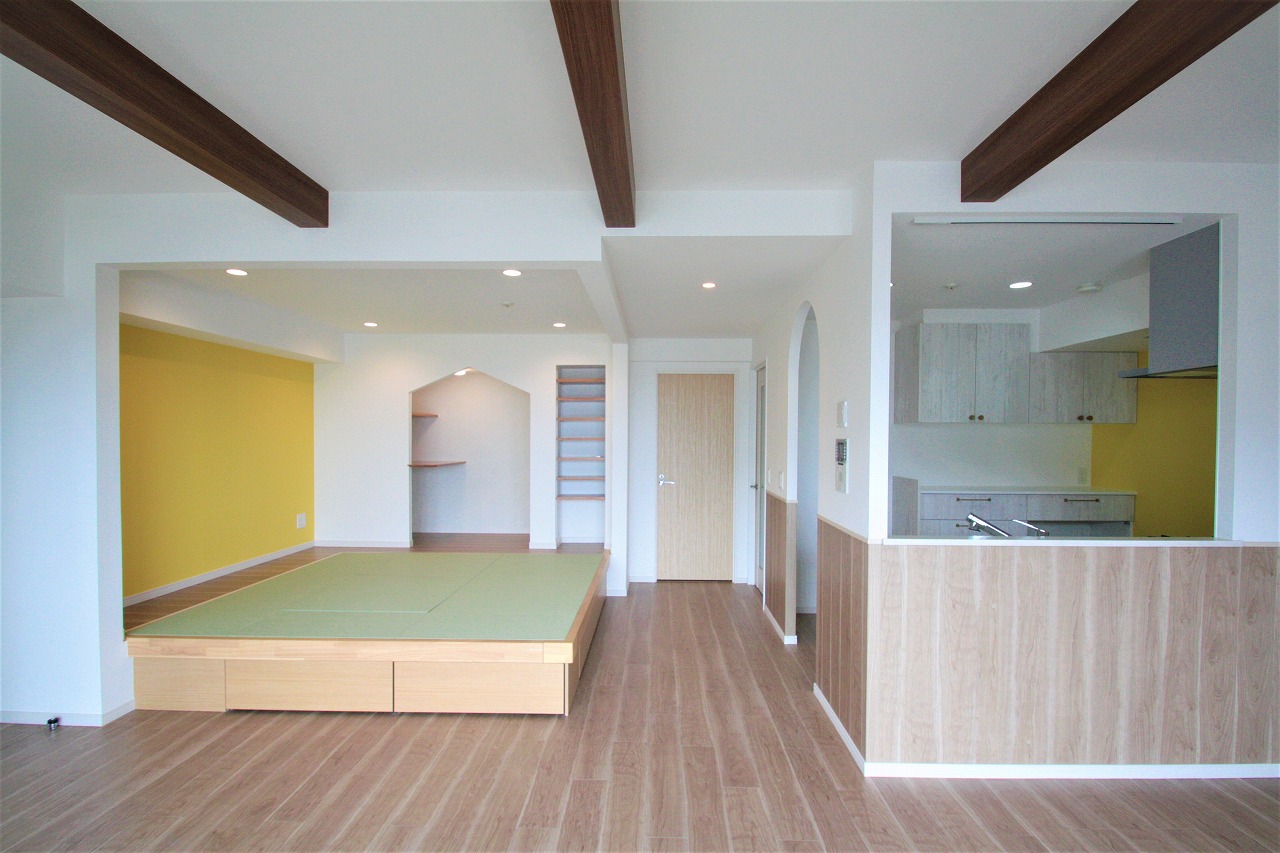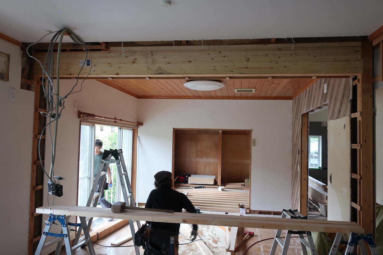 K様邸は、ダイニングキッチンと居間をひとつのLDKにするため、仕切り壁の撤去を行いました。
