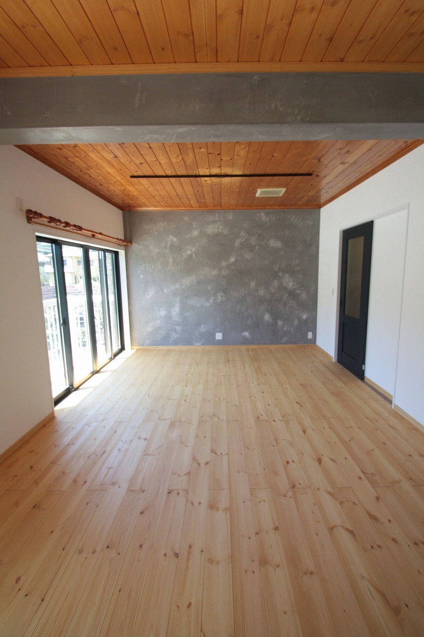 (↑以前にご紹介したF様邸。無垢フローリングに合わせて梁も自然塗料で塗装しました。)