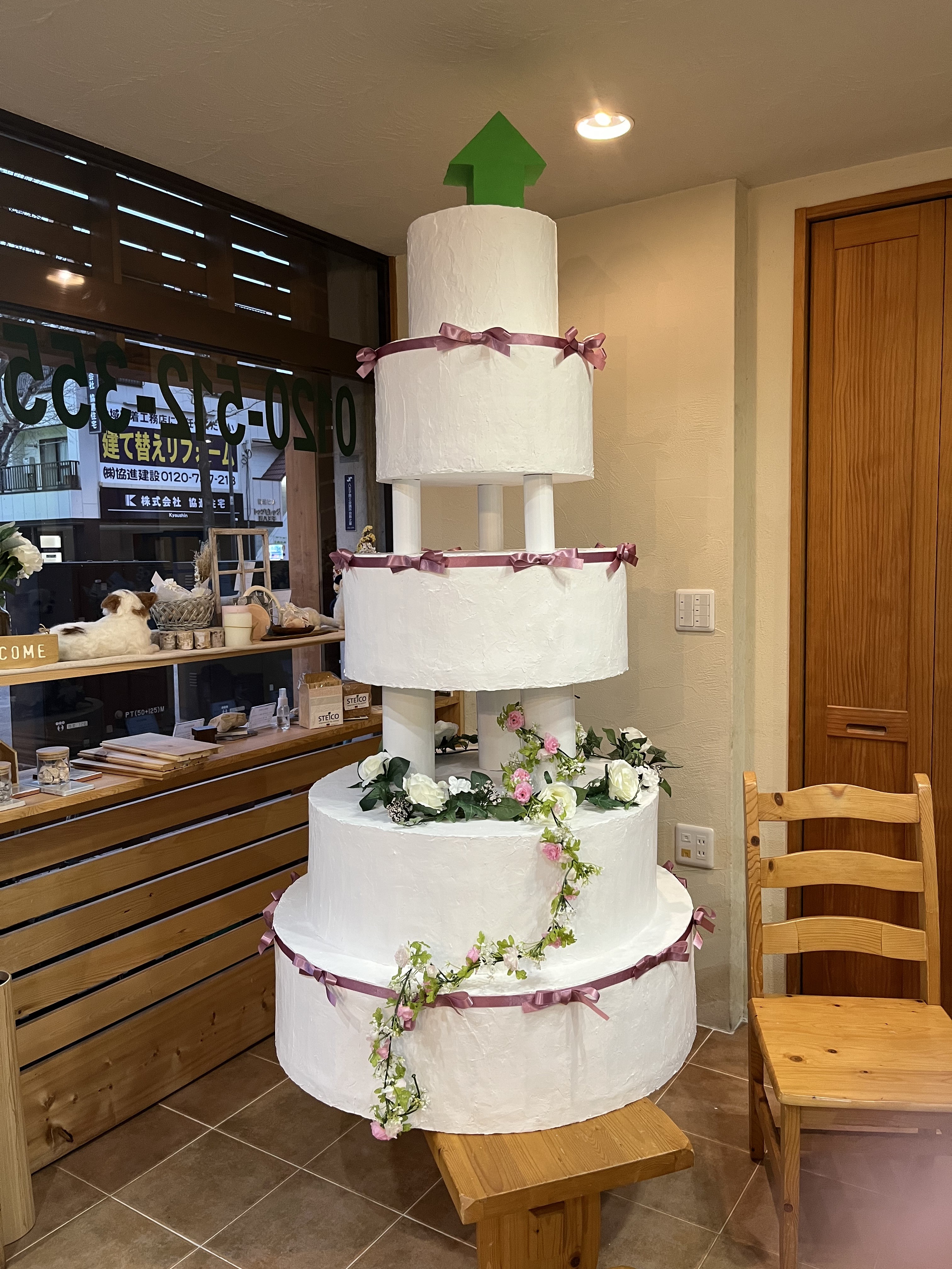 会場の真ん中に大きなウエディングケーキを展示する予定です![]()