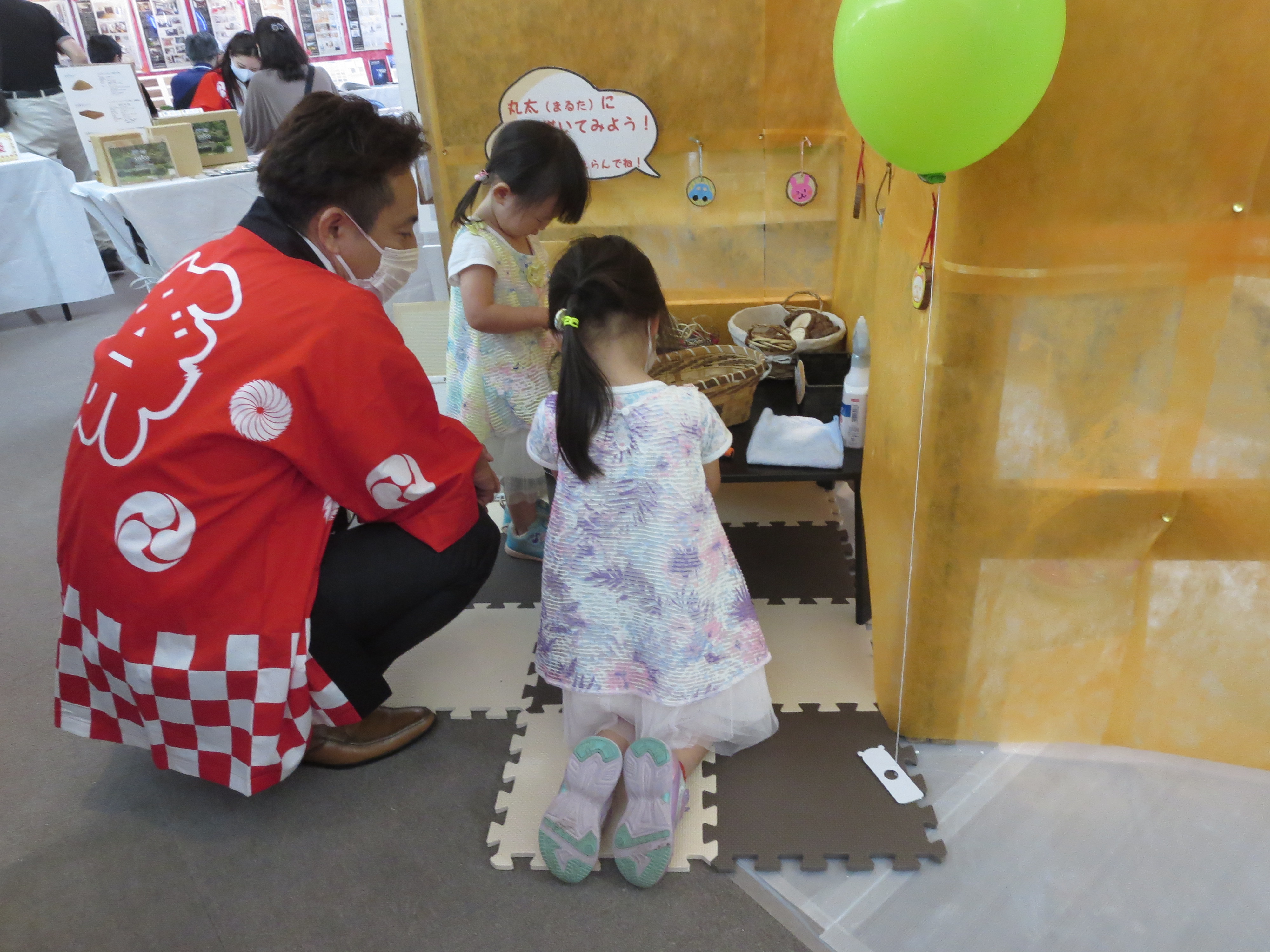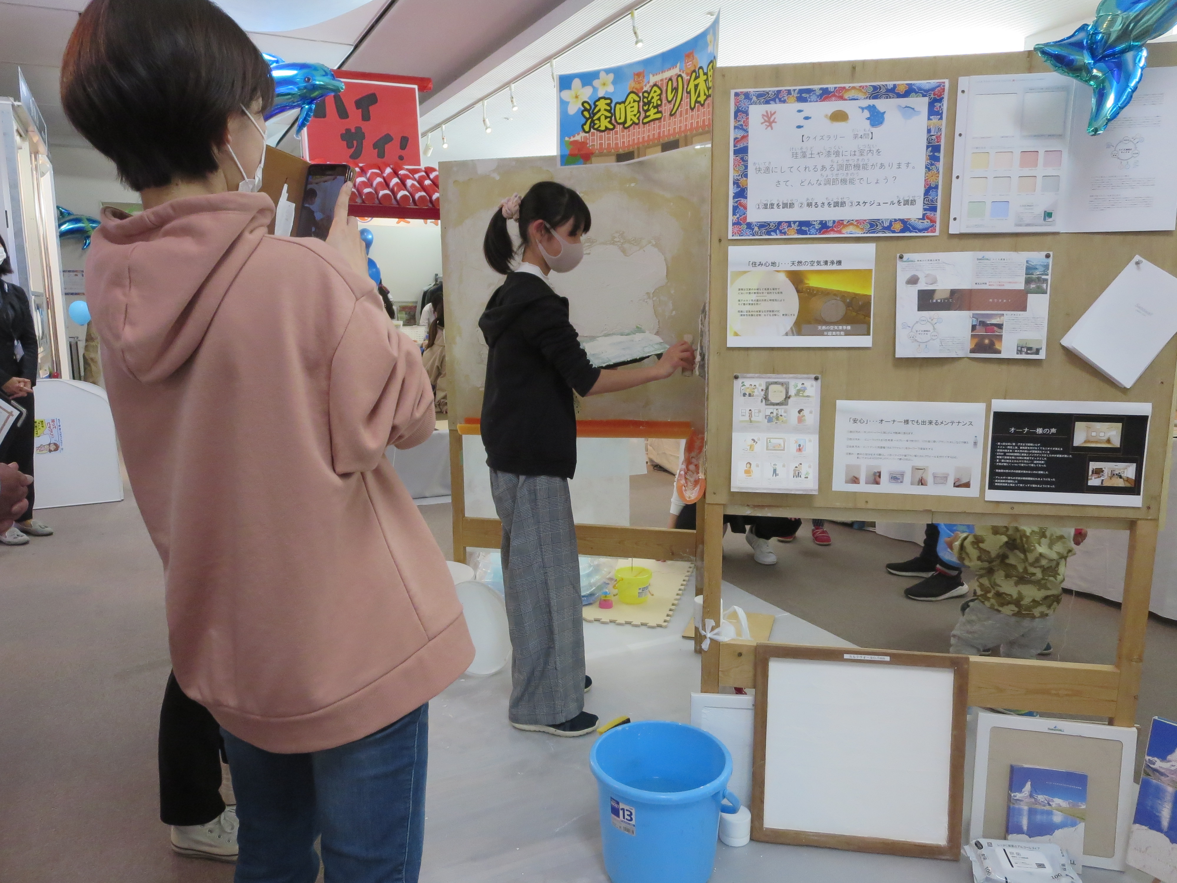 塗り壁体験コーナー』では、自然素材の「珪藻土」や「しっくい」を実際に塗ることができます
