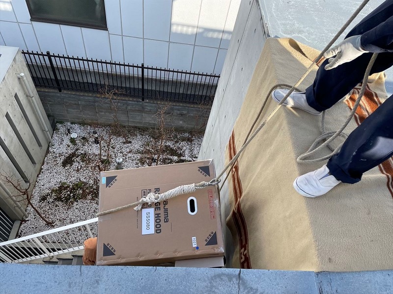 S様のお住まいになっているマンションが少々特殊なため、キッチンの搬入時は少し大変でした![]()