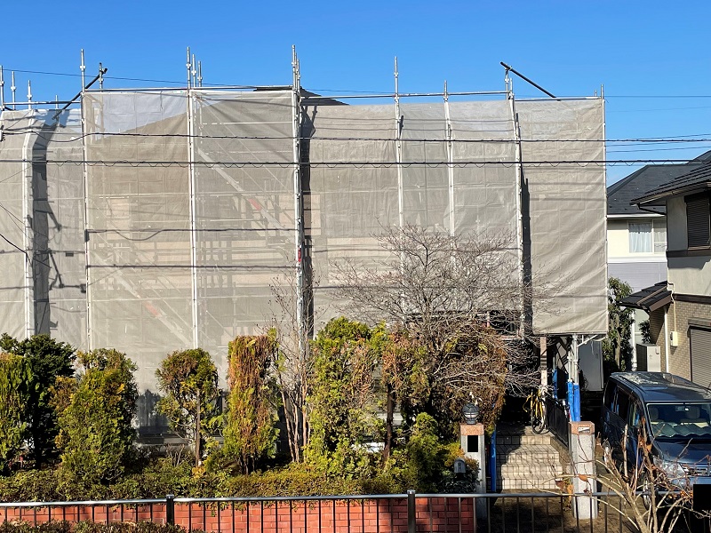 屋根材の設置ができたら、足場を解体して工事の完了です![]()