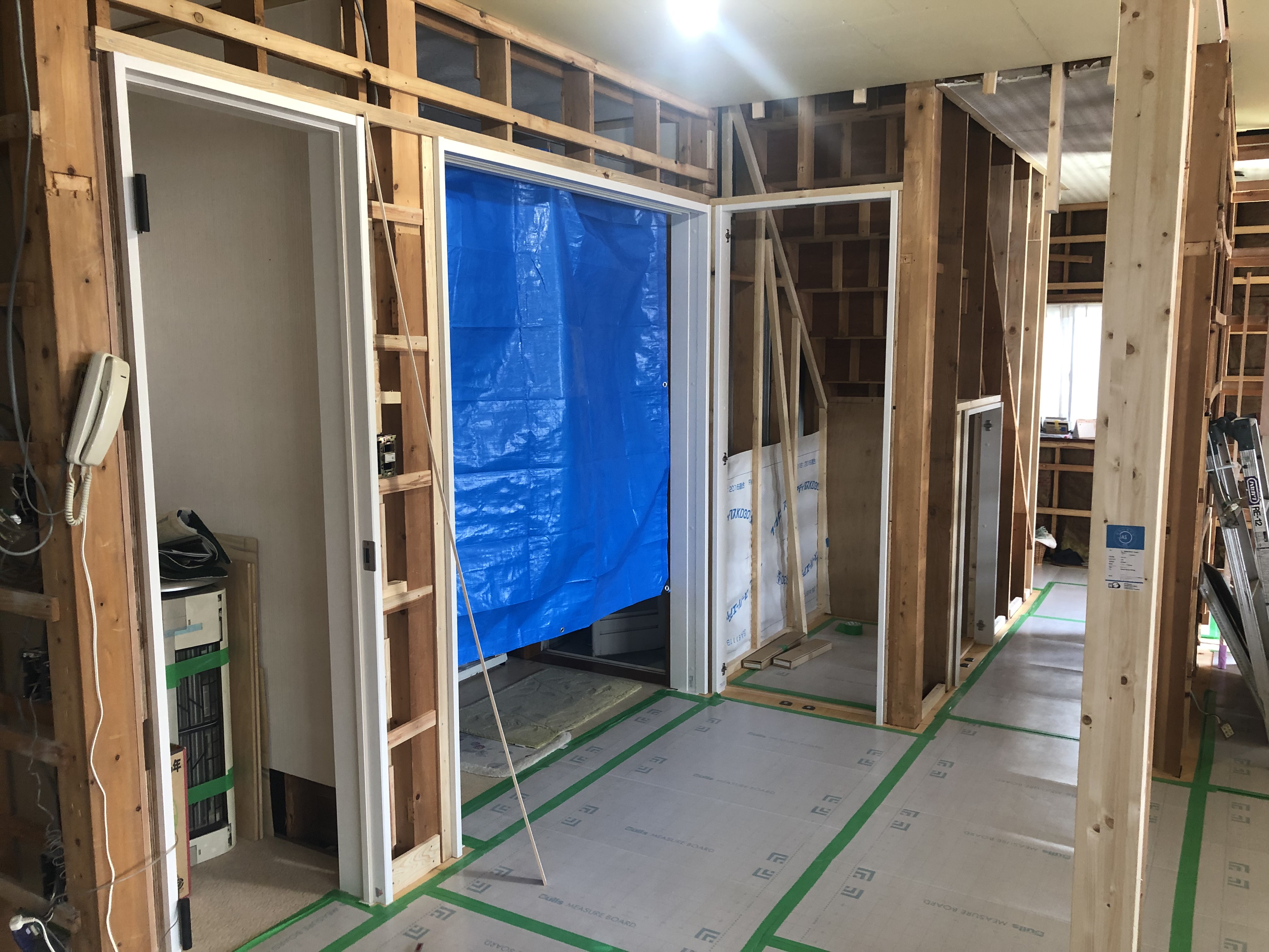 床が貼り終わって建具の枠を設置したりとどんどん完成に近くなってきてます!