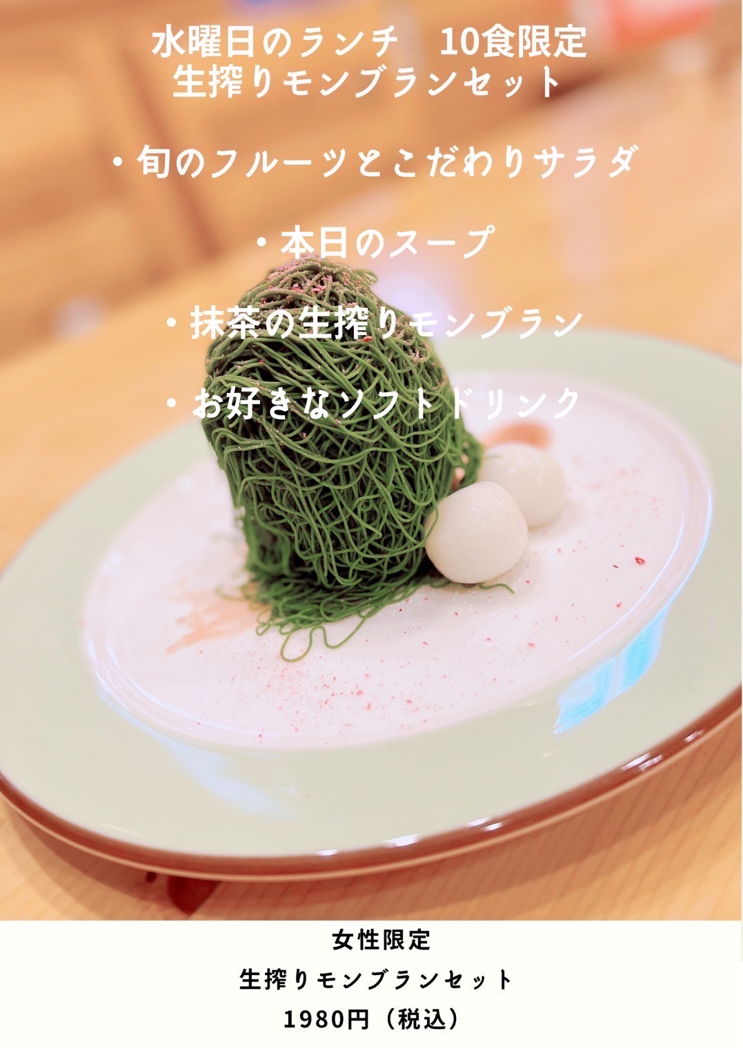 本日25日(水)は「生搾りモンブランランチセット」の日![]()