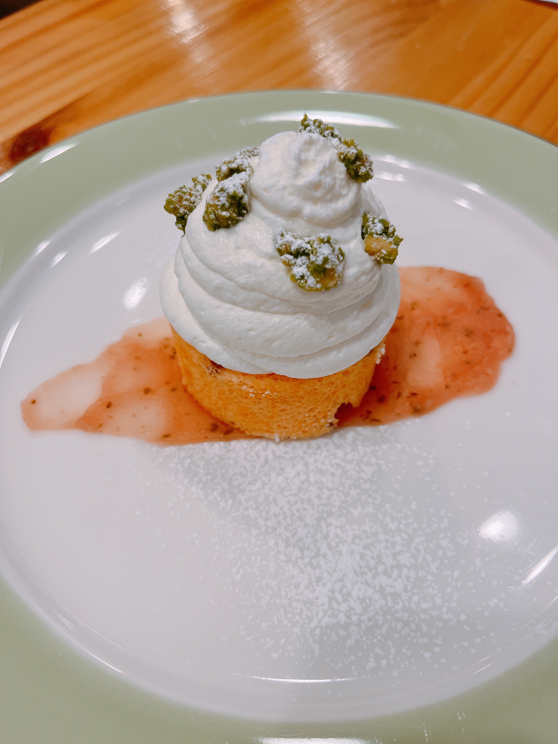 そして最後に自家製白玉と桜のフリーズドライを添えて、完成です![]()