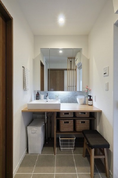 《事例④:小学校の理科室をイメージした、和モダンスタイルの造作洗面》